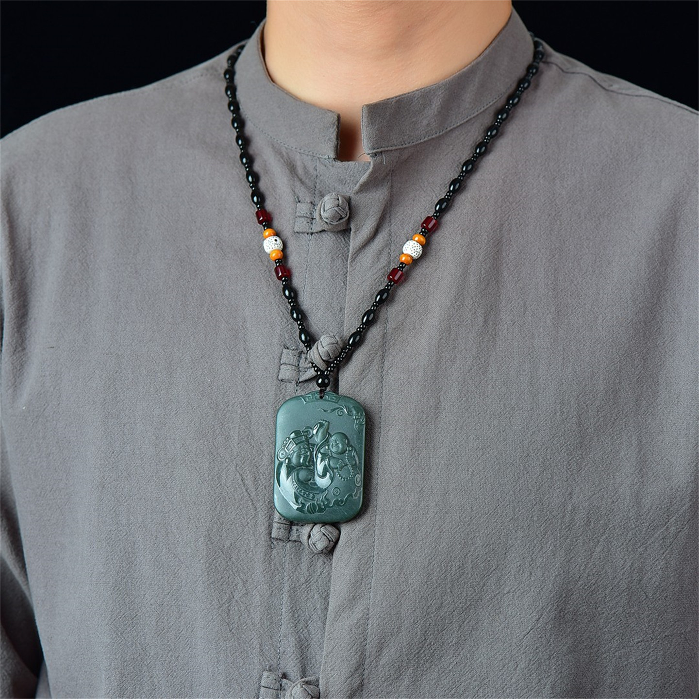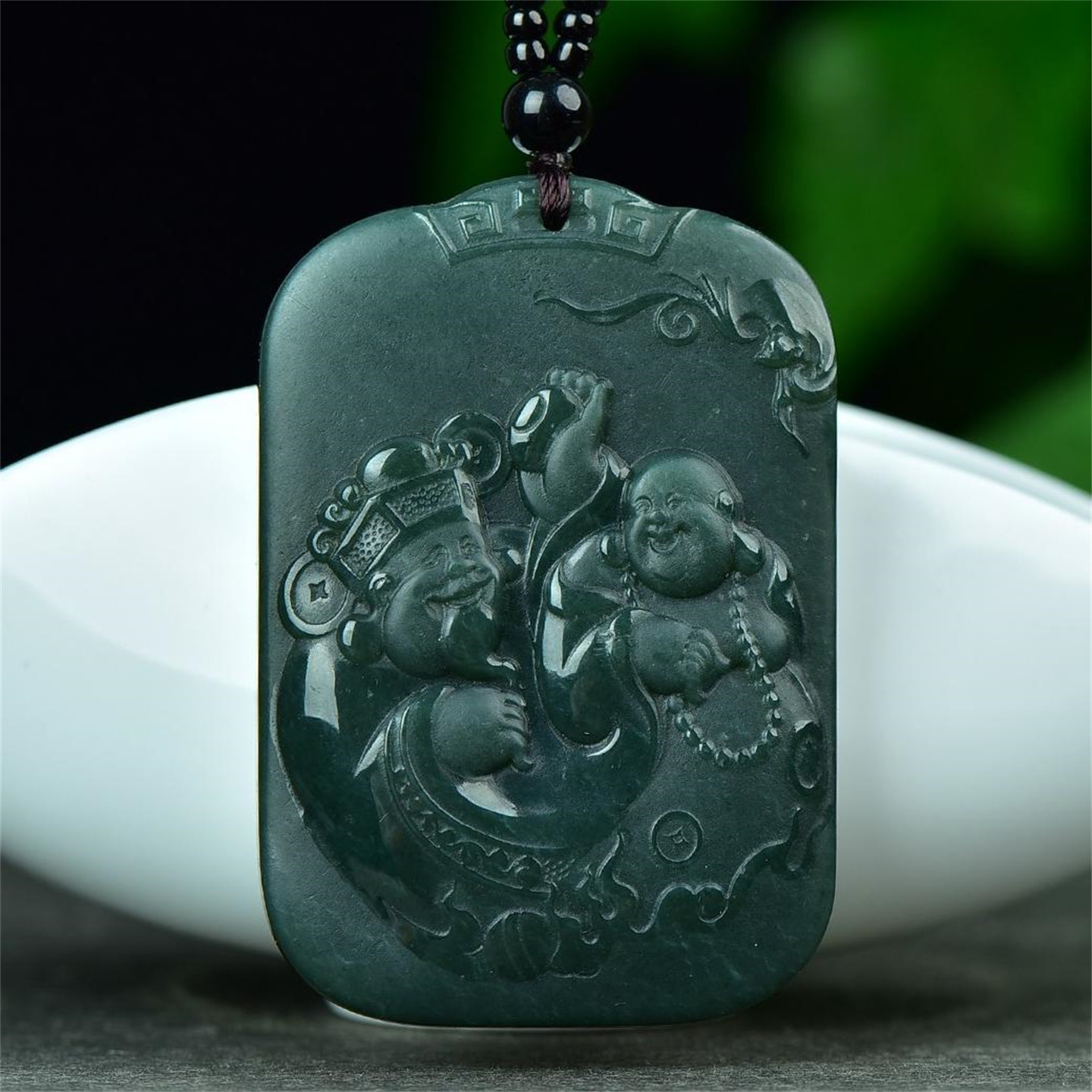天然新疆和田玉青玉挂件财神弥勒佛人财两旺玉石吊坠男款玉佩8814