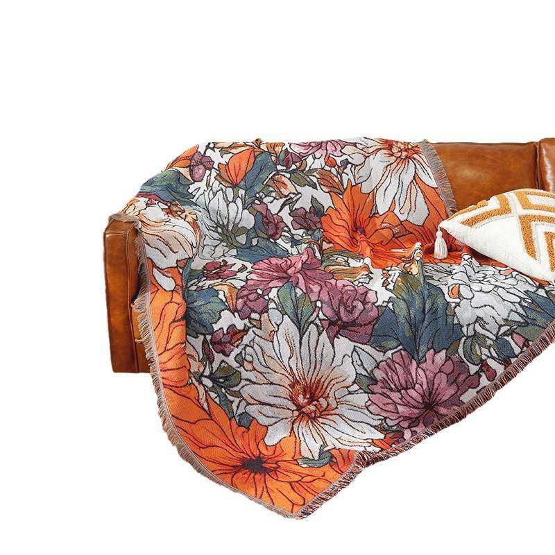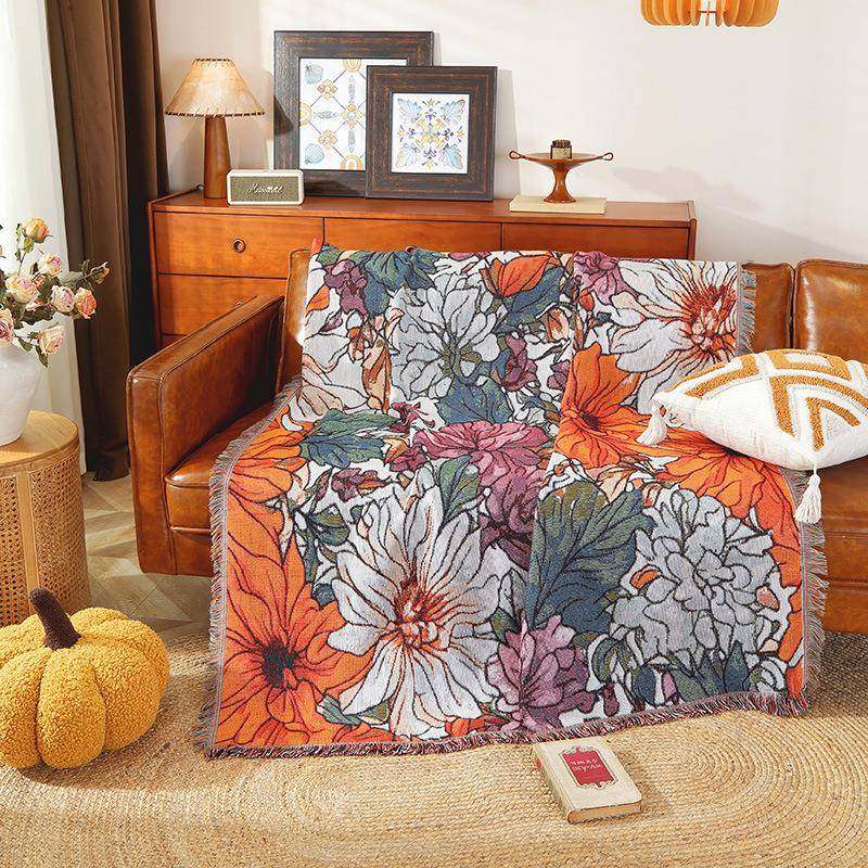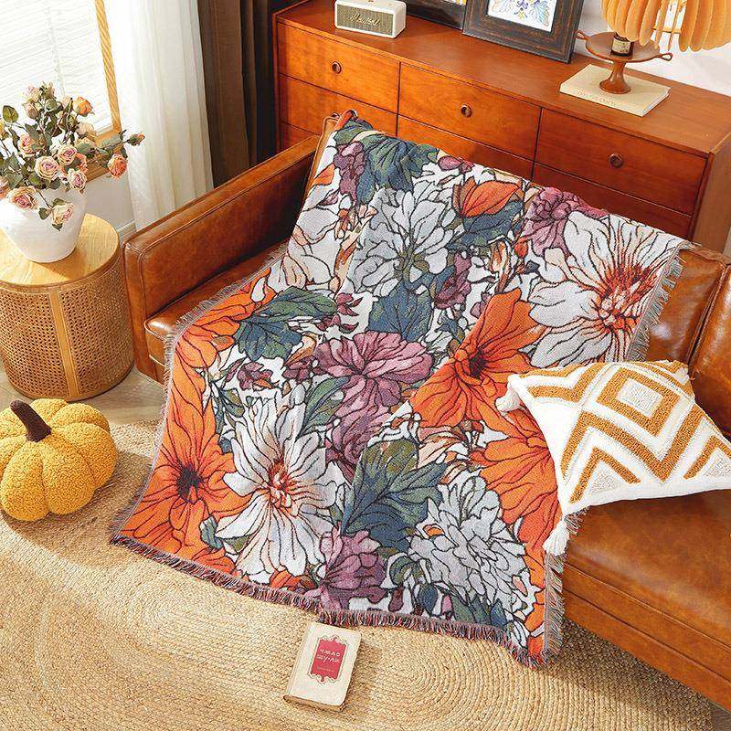 定制花卉花朵挂毯野餐毯多功能棉线毯沙发盖毯户外露营毯装饰布置