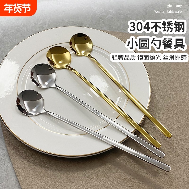 304不锈钢长柄咖啡勺精致勺子甜品搅拌勺汤匙蜂蜜果酱勺轻奢金属
