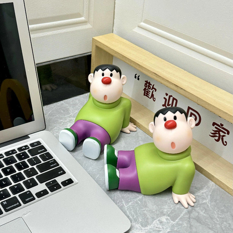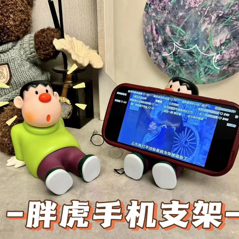 可爱胖虎手机支架车载桌面摆件歪头可动手办模型公仔潮玩礼物装饰
