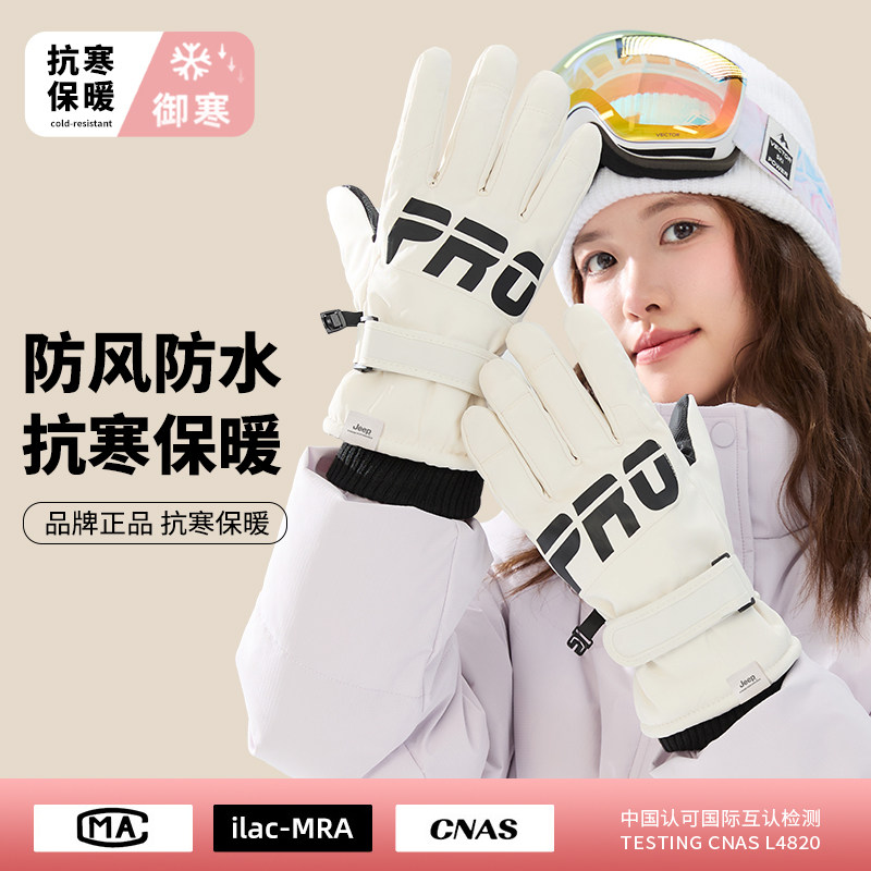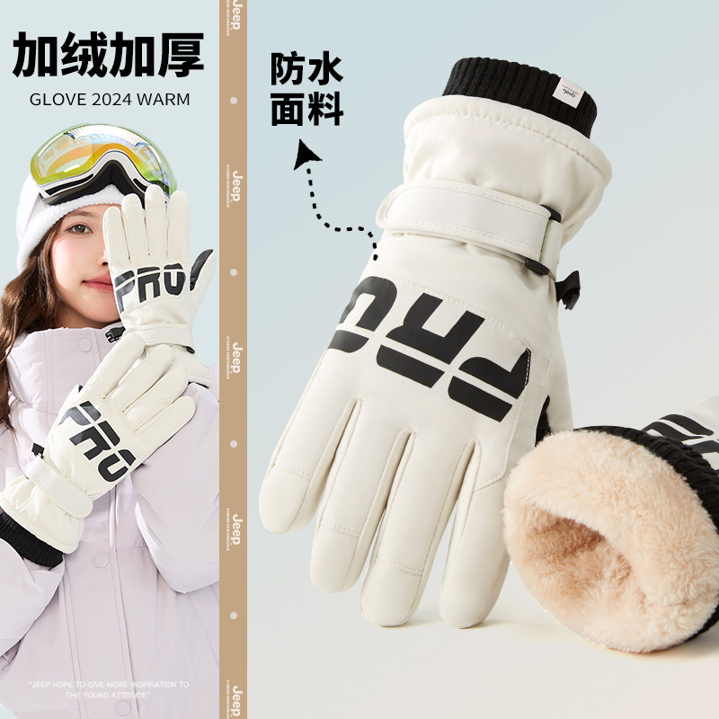 jeep吉普防水保暖手套冬季女滑雪防风加绒骑车电动车秋冬手套女士