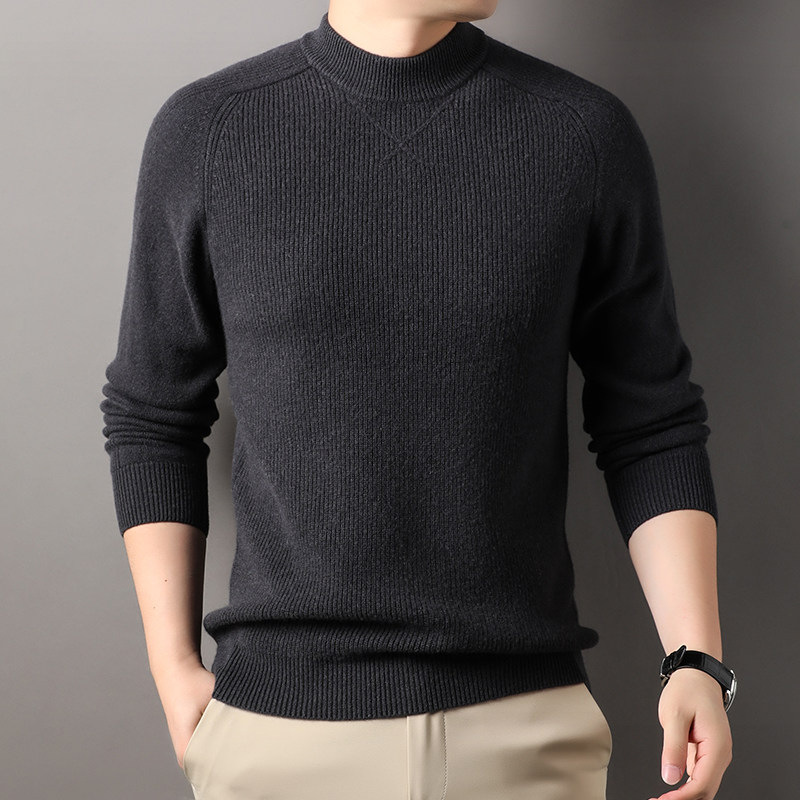 鄂尔多斯市半高领100%纯羊毛衫男休闲中厚保暖毛衣针织打底羊绒衫