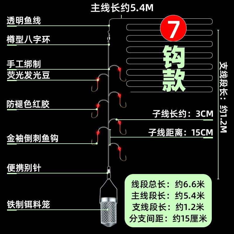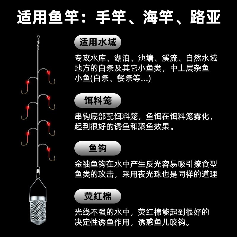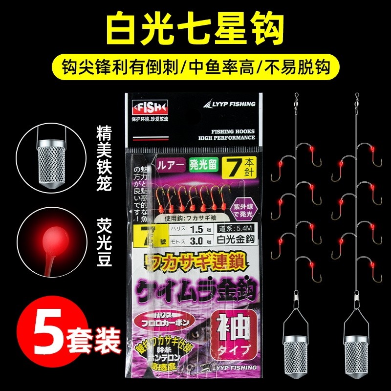 新款小白条翘嘴杀手金袖鱼钩7钩带笼子白光金钩夜光七星串钩钓组