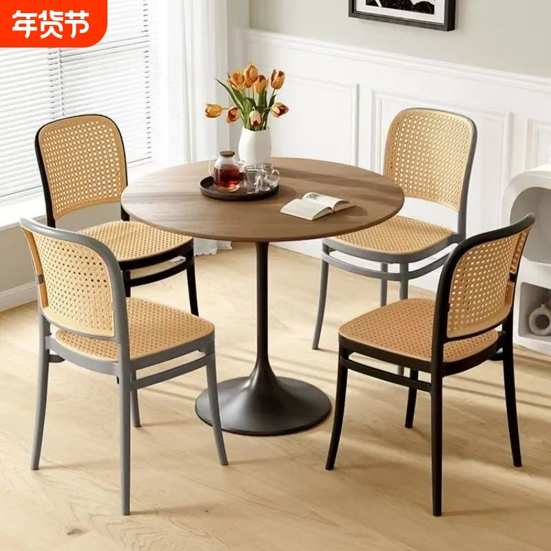 北欧塑料藤编椅子叠放靠背椅商用户外家用网红餐椅休闲桌椅小户型