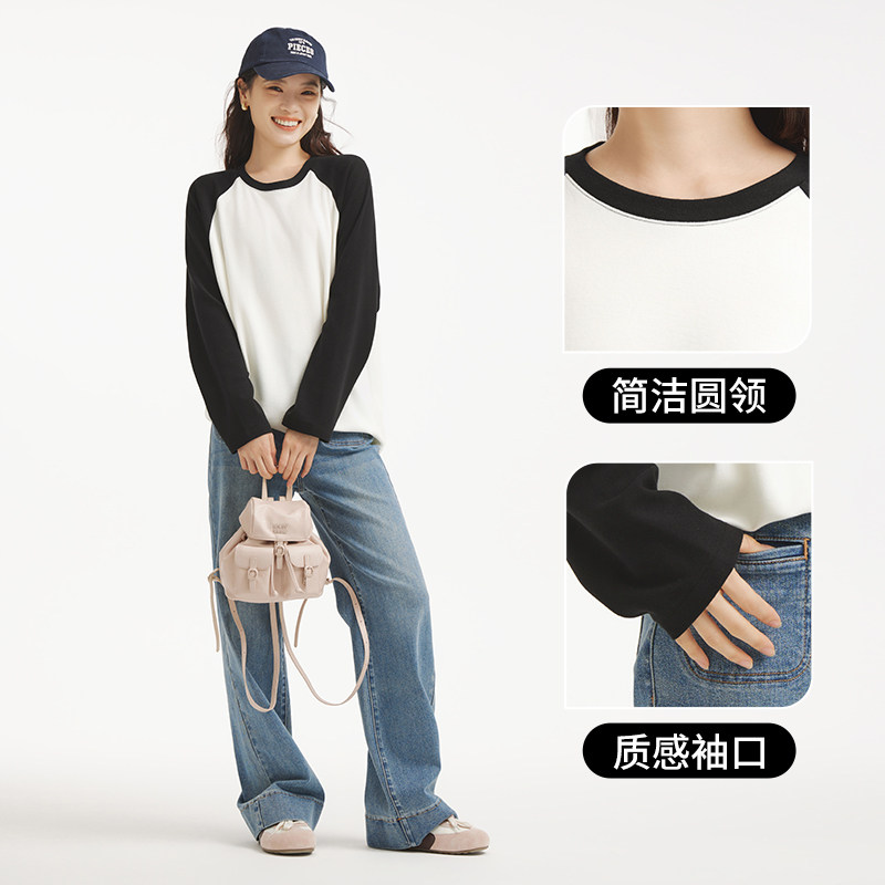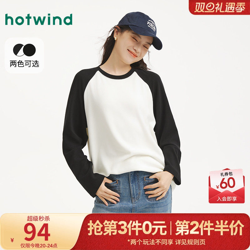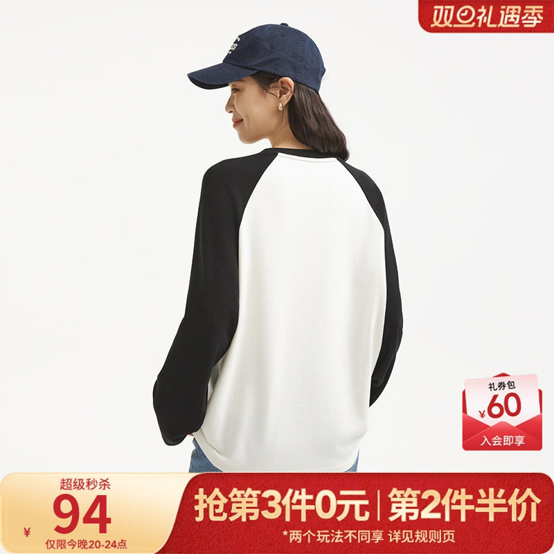 热风2025年冬季新款女士插肩长袖T保暖不臃肿宽松无束缚