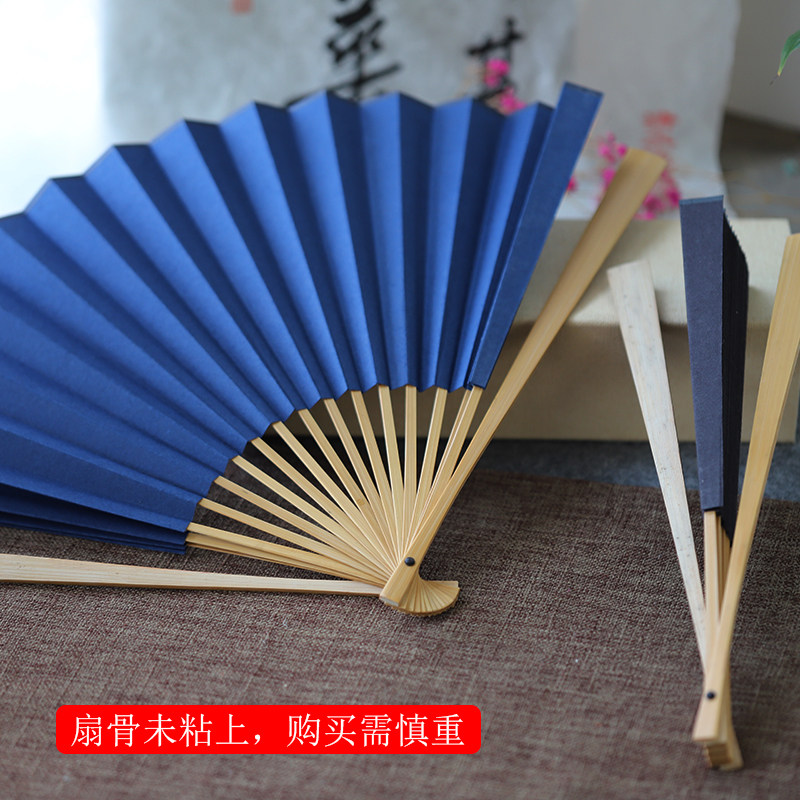 同和纸庄 空白黑m色蓝色宣纸玉竹折扇文玩扇子9寸空白玉竹折扇