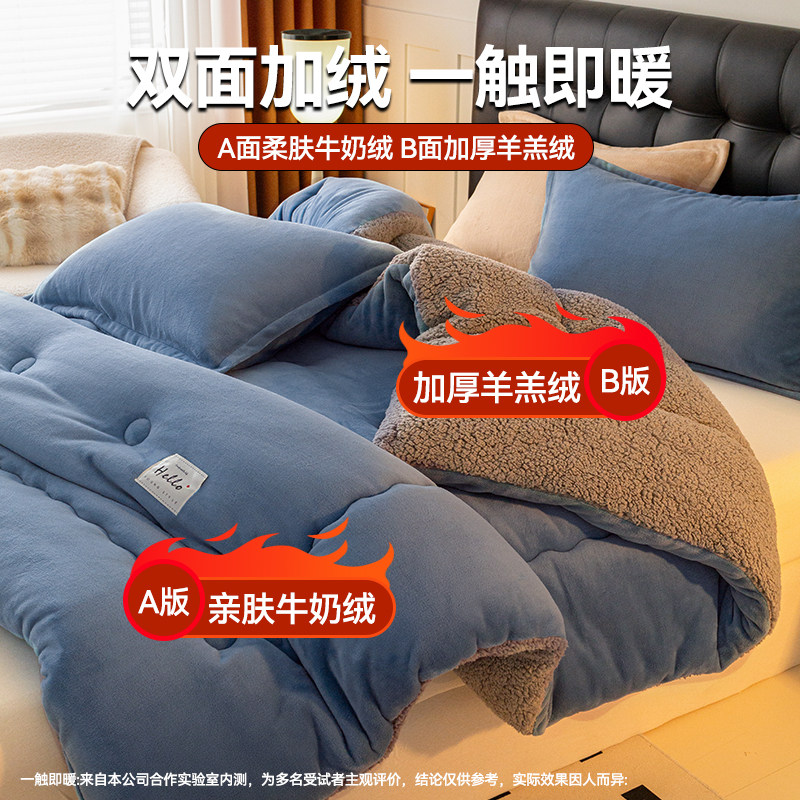 冬被2025新款双面绒加厚保暖纯色被褥珊瑚绒被褥暖被床品双人被芯