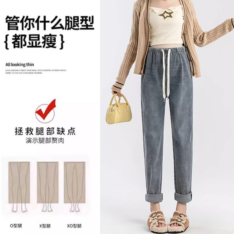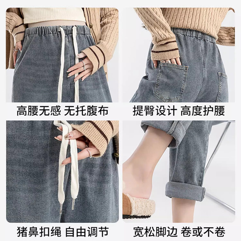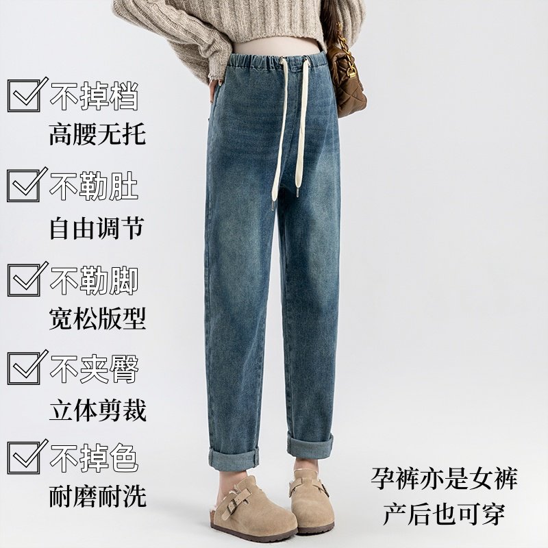 孕妇牛仔裤秋冬季加绒加厚外穿大码宽松高个子孕期不勒肚子阔腿裤