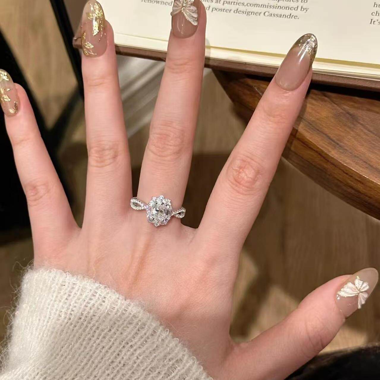 「旋转芭蕾」爆闪鸽子蛋钻戒ins气质高级戒指指环送女友求婚礼物
