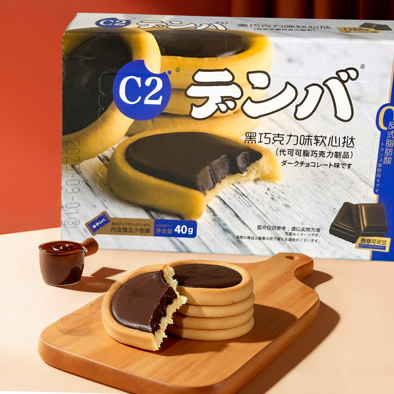 C2软心挞40g黑巧克力芝士抹茶味夹心饼干网红零食好吃的小包装