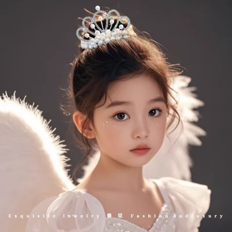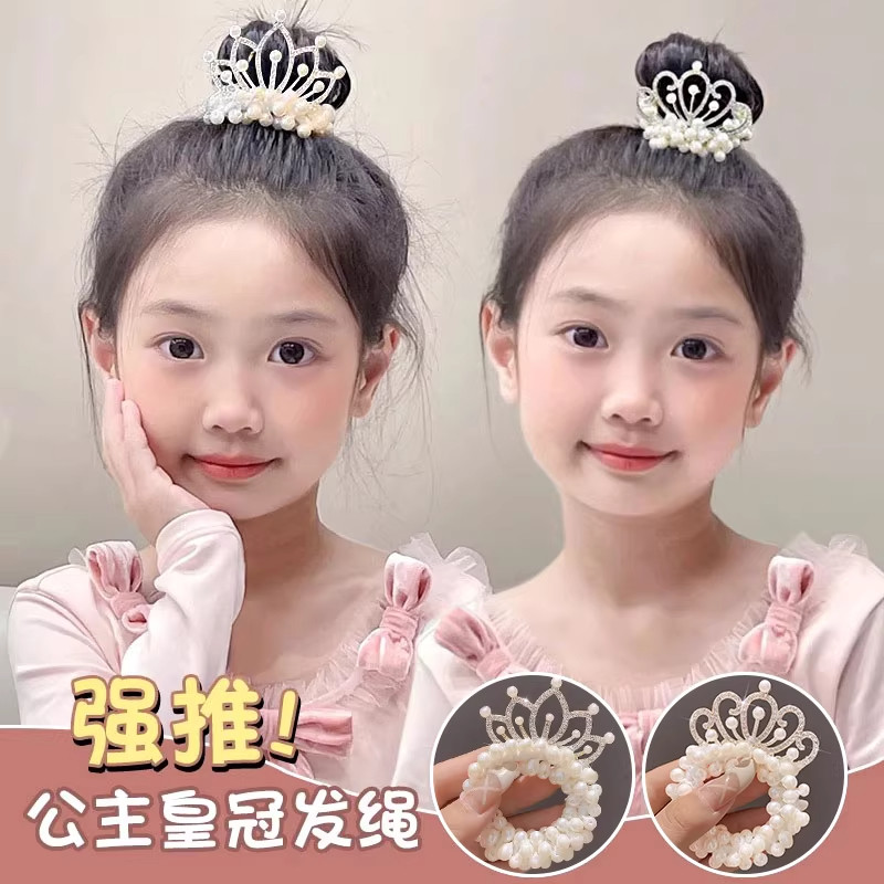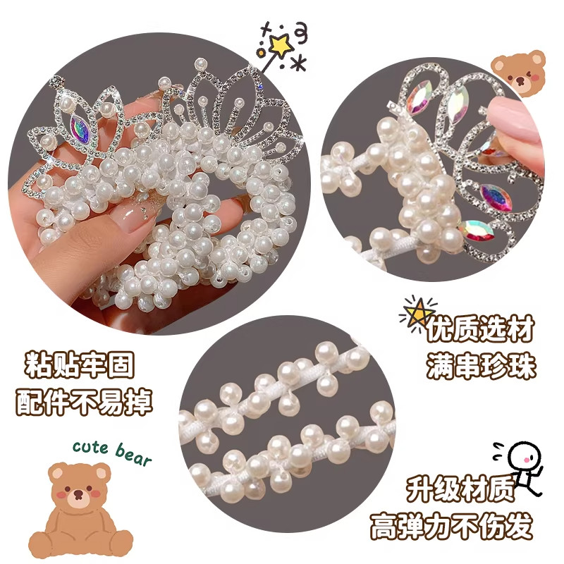 儿童皇冠珍珠发圈女童2026新款高级感丸子头发绳不伤发头绳发饰品