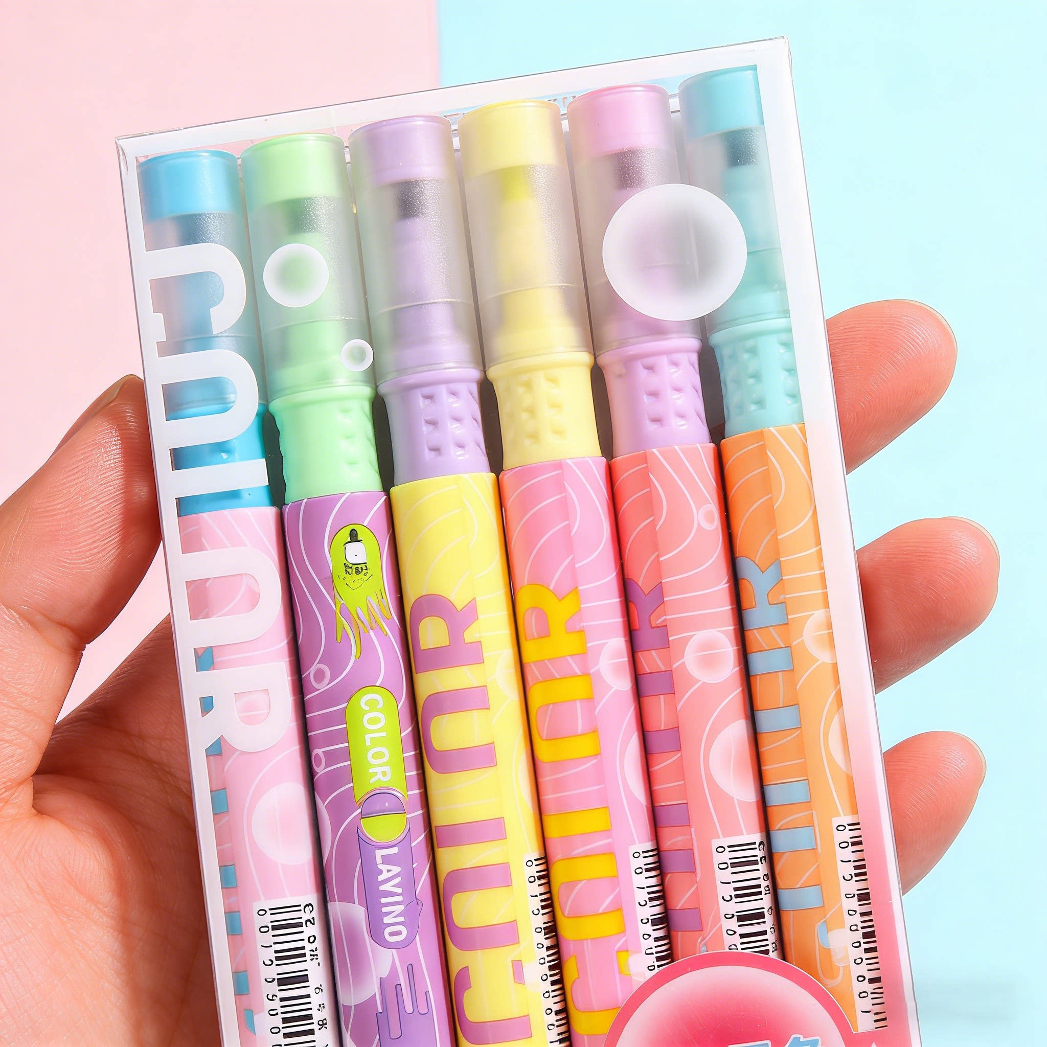 果冻笔3D立体手账笔网红彩色手账专用笔学生用标记笔划重点荧光笔双色轮廓笔闪光啫喱笔指甲果汁笔手抄报画笔