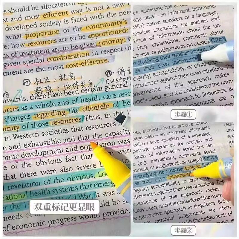 【新品上市】双头叠色荧光笔划重点彩色记号笔小学生专用做笔记闪光啫喱笔标记笔初中生专用美术绘画高颜值