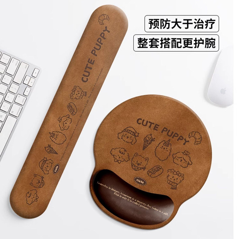 卡通可爱小狗护腕鼠标垫子女生保护手腕托一体电脑键盘托办公桌垫