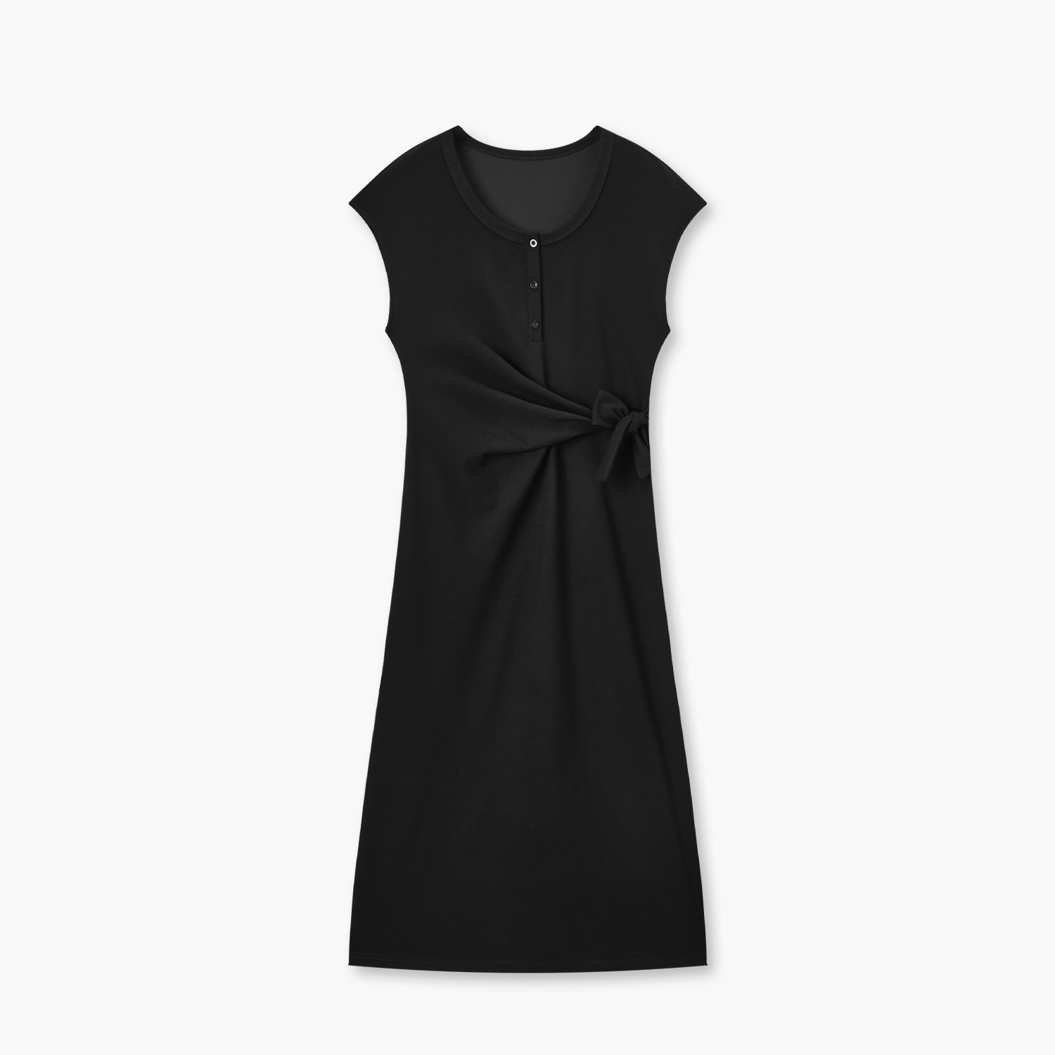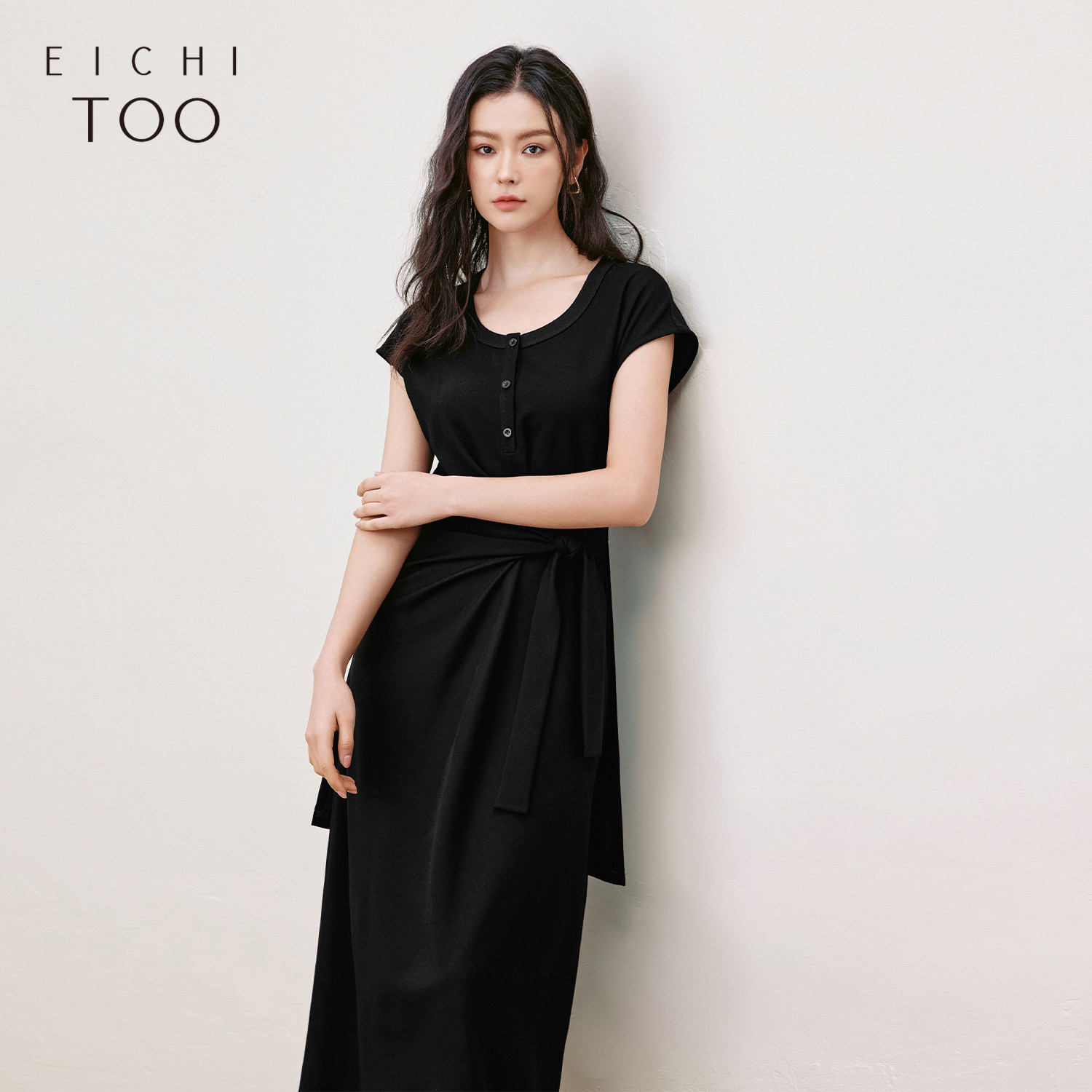 爱居兔设计感褶皱连衣裙女夏季新款扭结显瘦T恤裙小黑裙