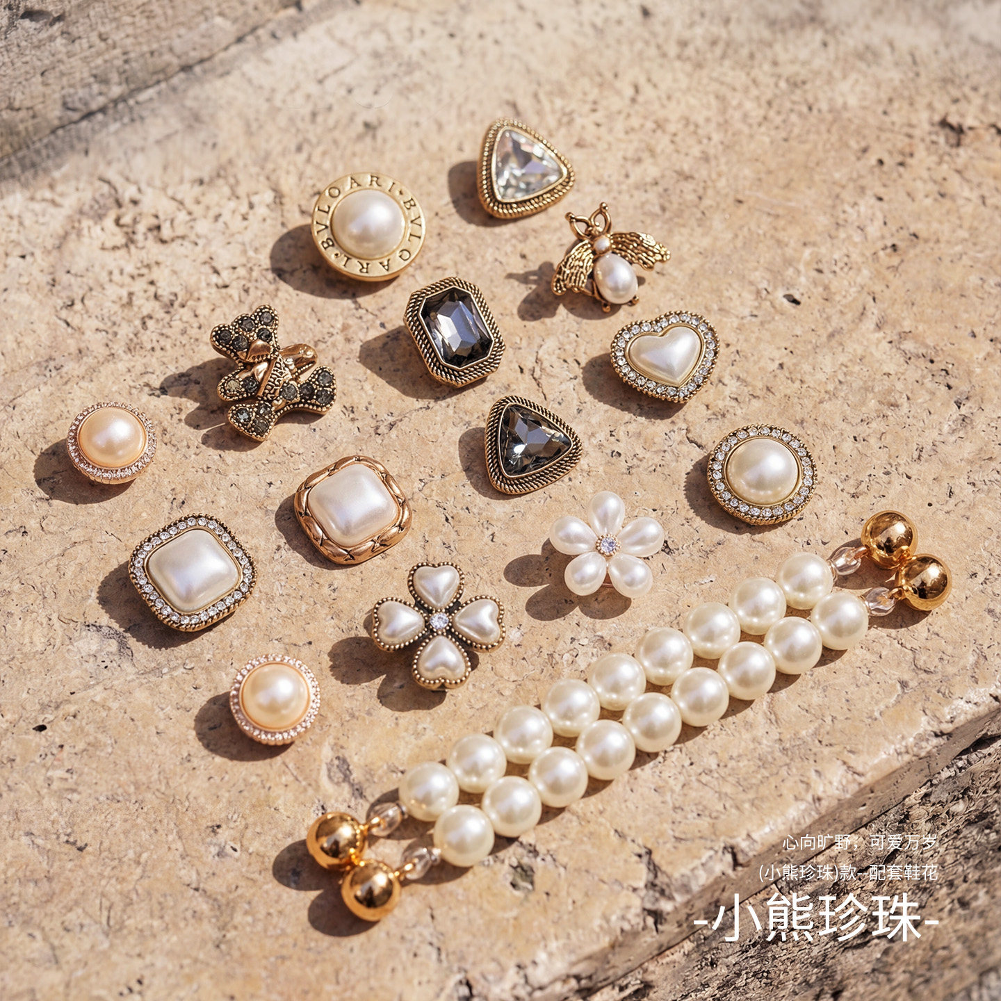 爱丽丝兔金属鞋花洞洞鞋配饰水钻闪亮高级感diy配件可拆卸鞋扣ins