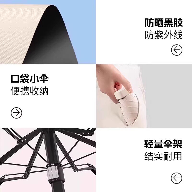 2025新品超轻小巧太阳伞晴雨两用女防晒伞防紫外线便携黑胶遮阳伞