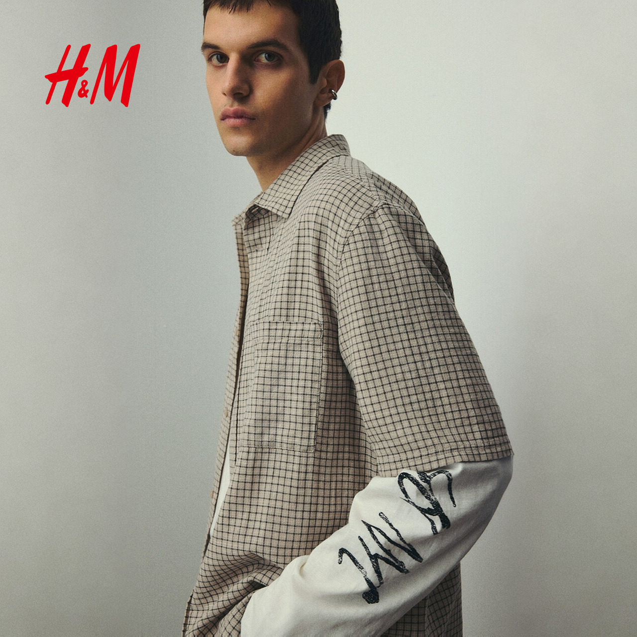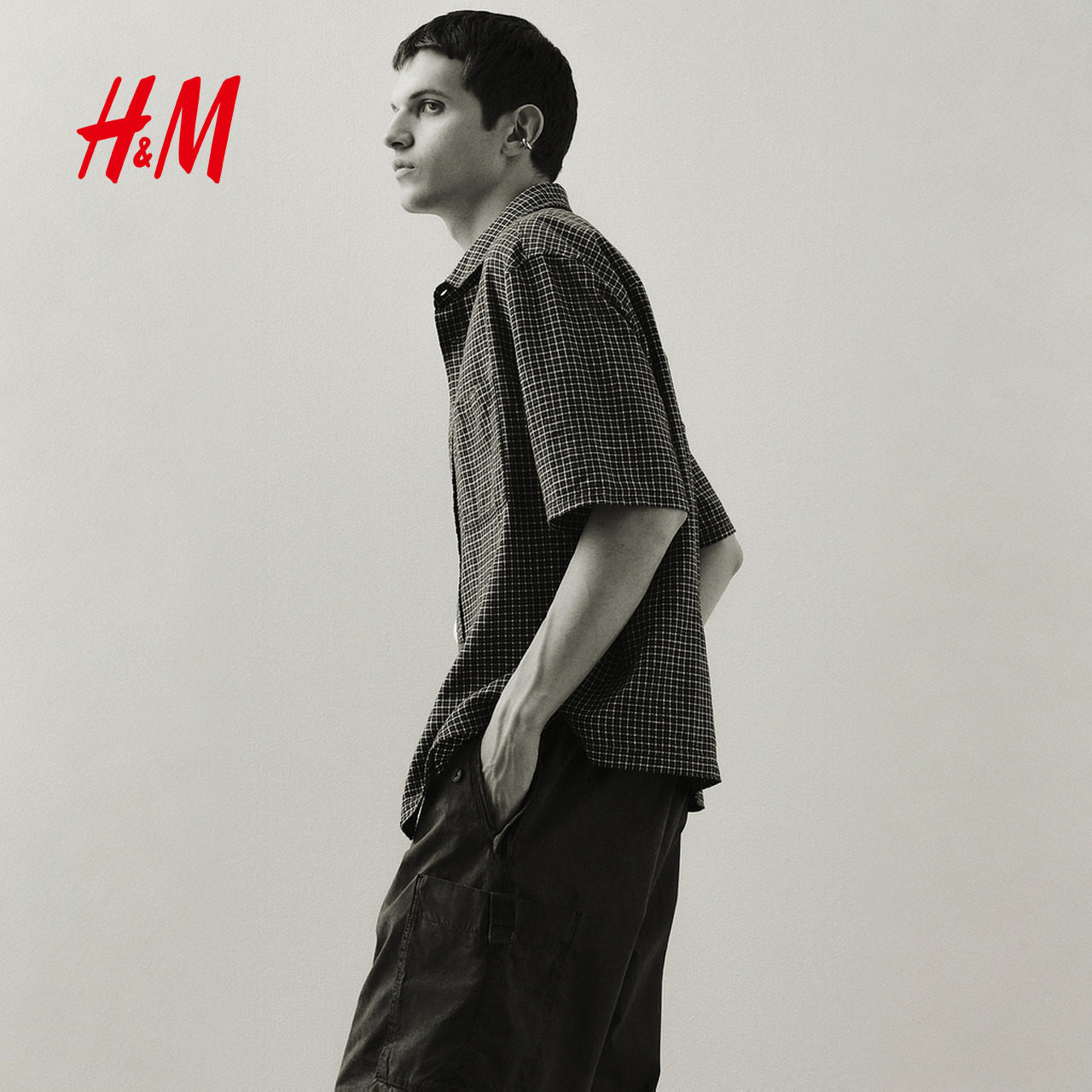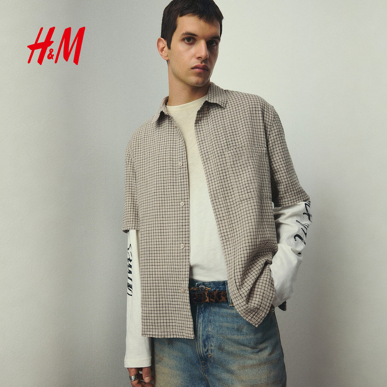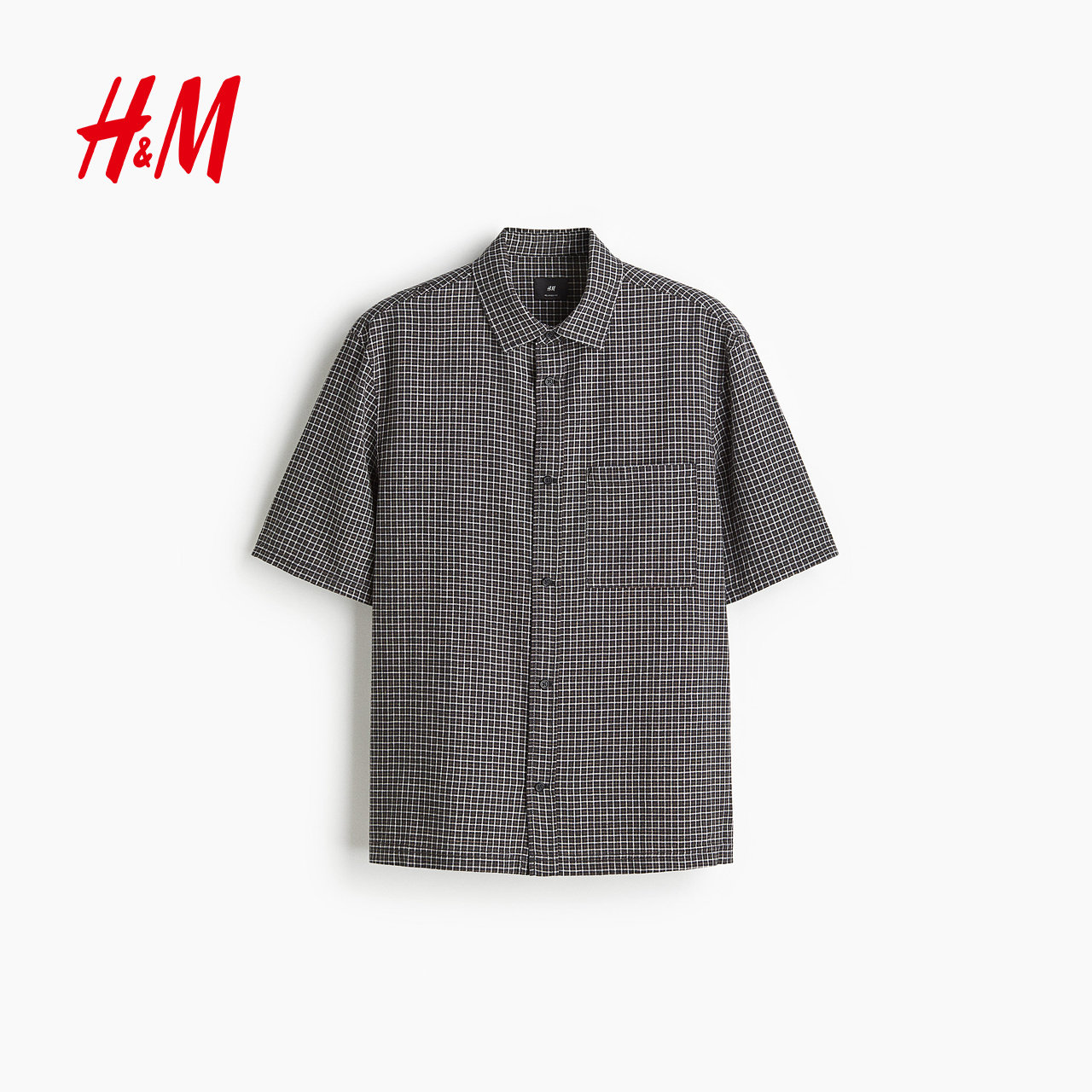 HM春季男装大廓形亚麻混纺短袖衬衫1282252
