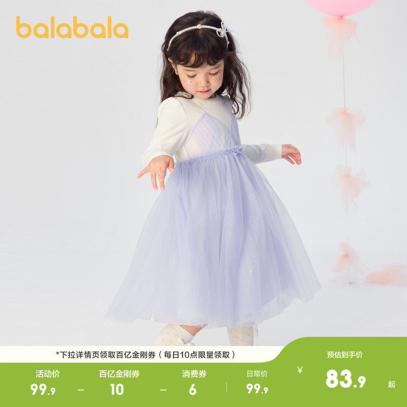 巴拉巴拉童装儿童连衣裙女童春秋假两件裙洋气甜美小童公主裙拼接