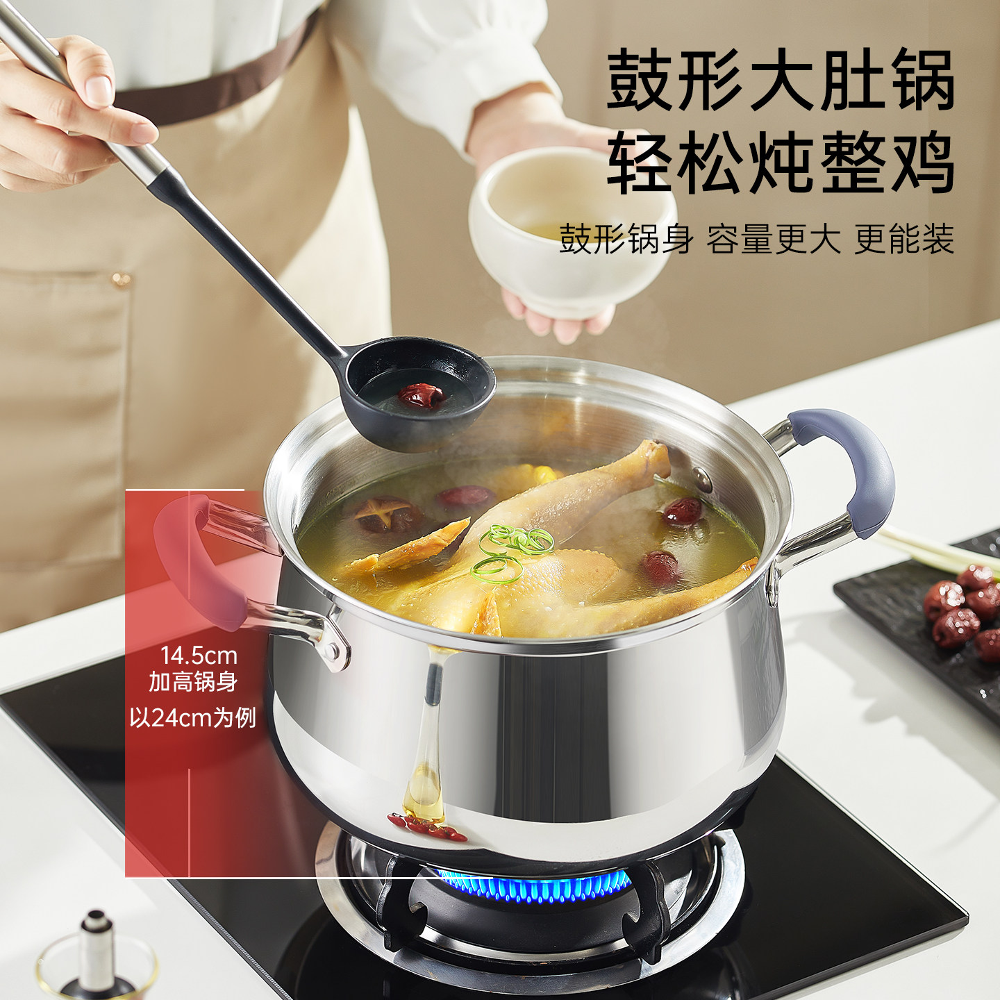 卡罗特汤锅家用加厚316L不锈钢煲煮锅炖锅无涂层燃气灶电磁炉通用