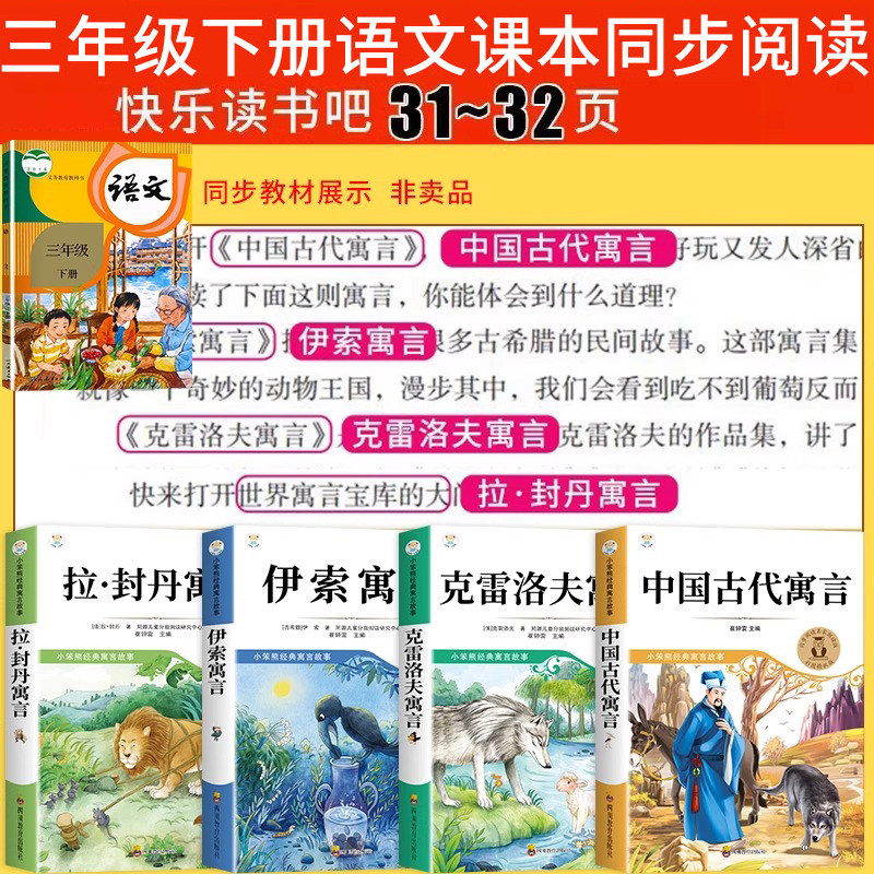 中国古代寓言故事三年级下册必读正版的课外书快乐读书吧三下阅读书籍推荐克雷洛夫寓言拉封丹伊索寓言大全集配套人教版书目老师