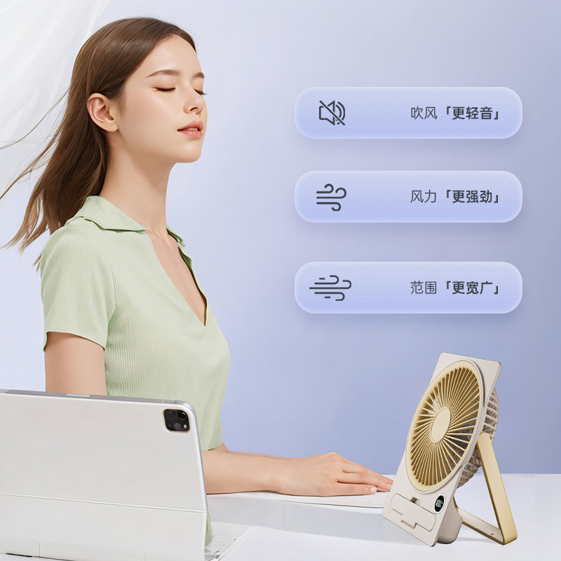 桌面小风扇超静音2025新款办公室桌上学生宿舍电风扇小型USB充电款迷你便携手持强力无声台式台扇长续航工位