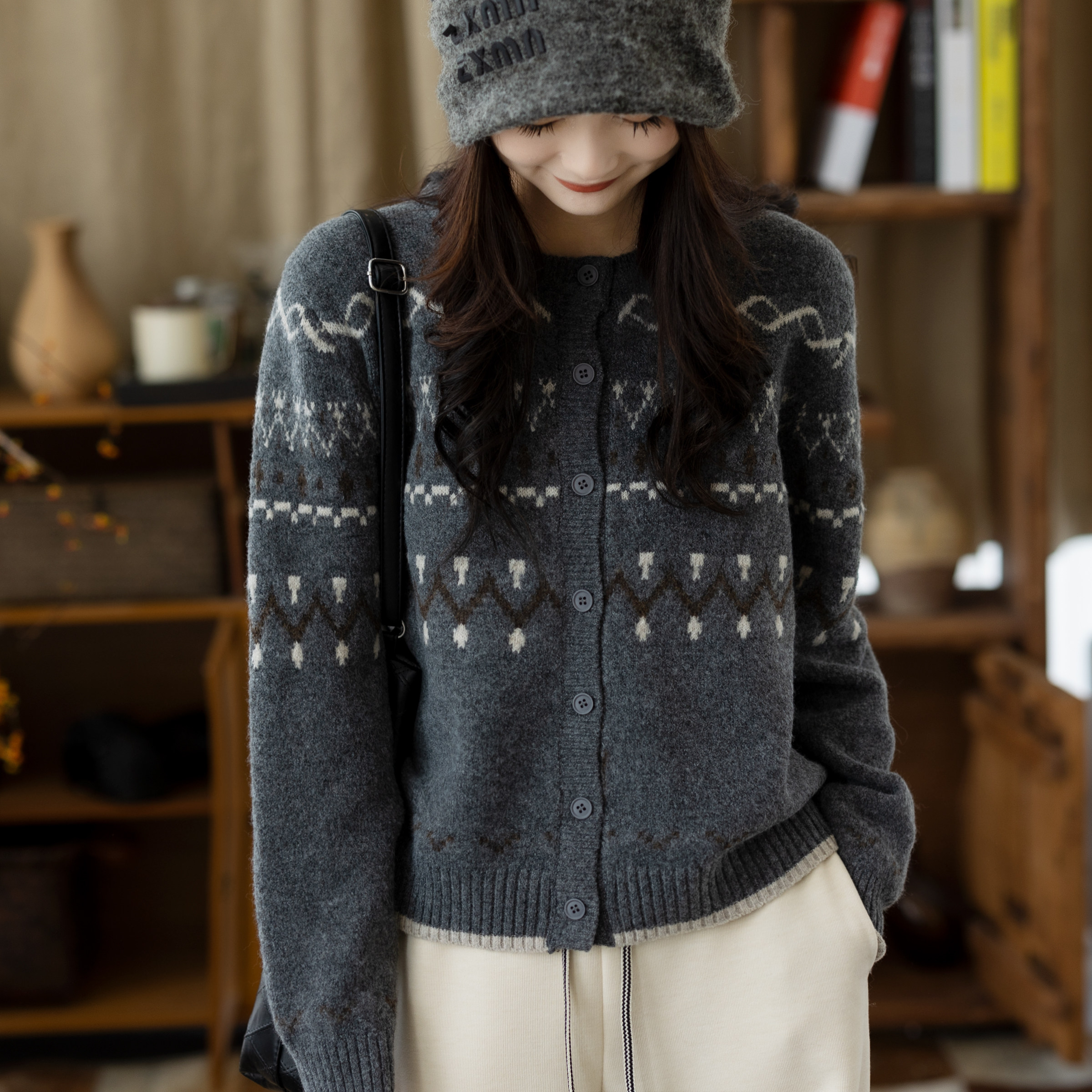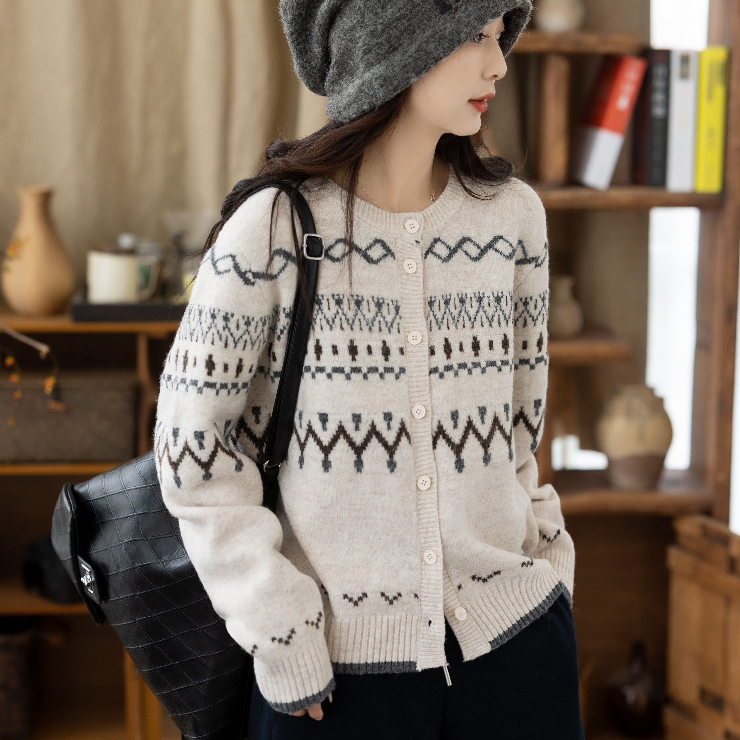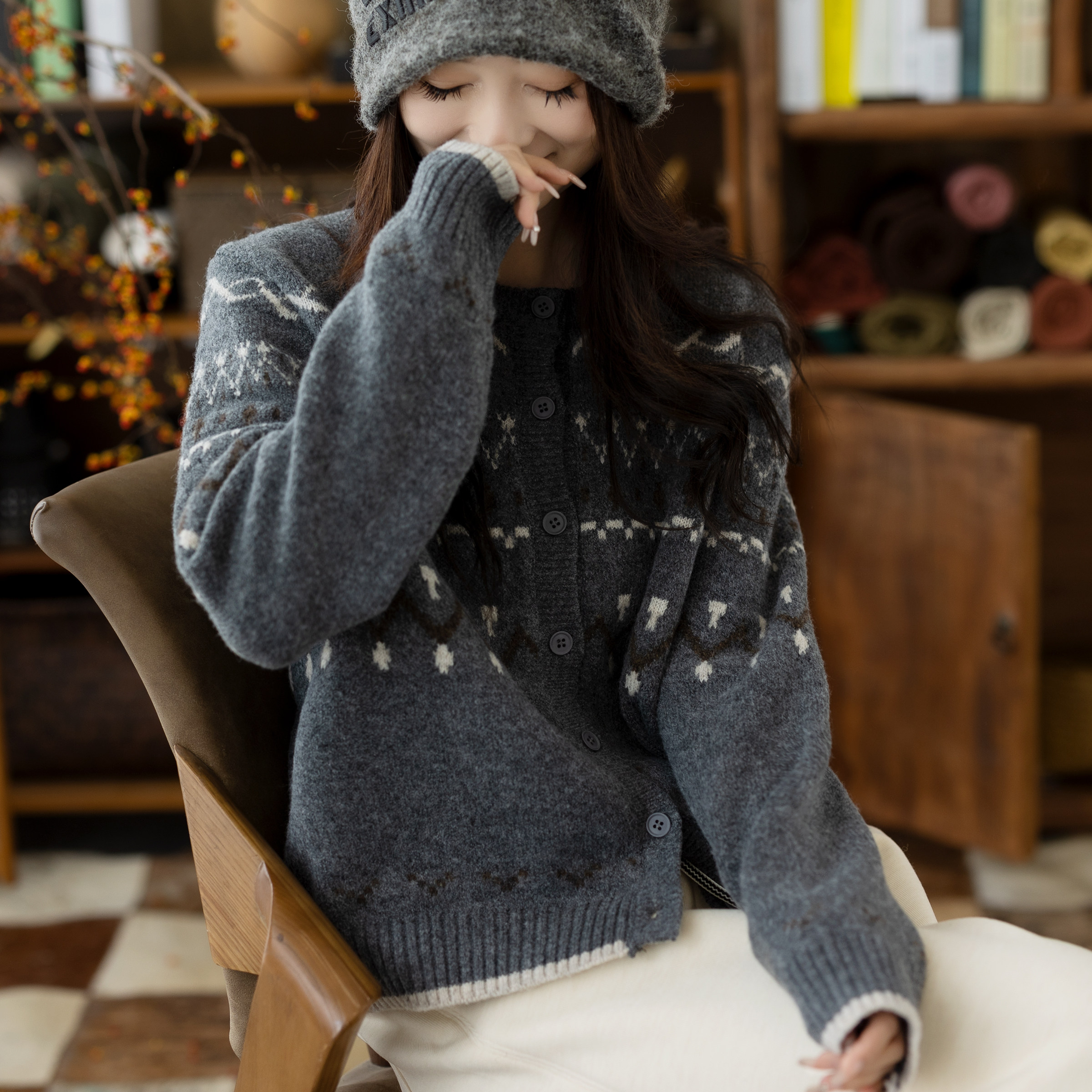 鄂尔多斯市断码羊绒开衫女春秋新款宽松毛衣外套翻领针织羊毛衫