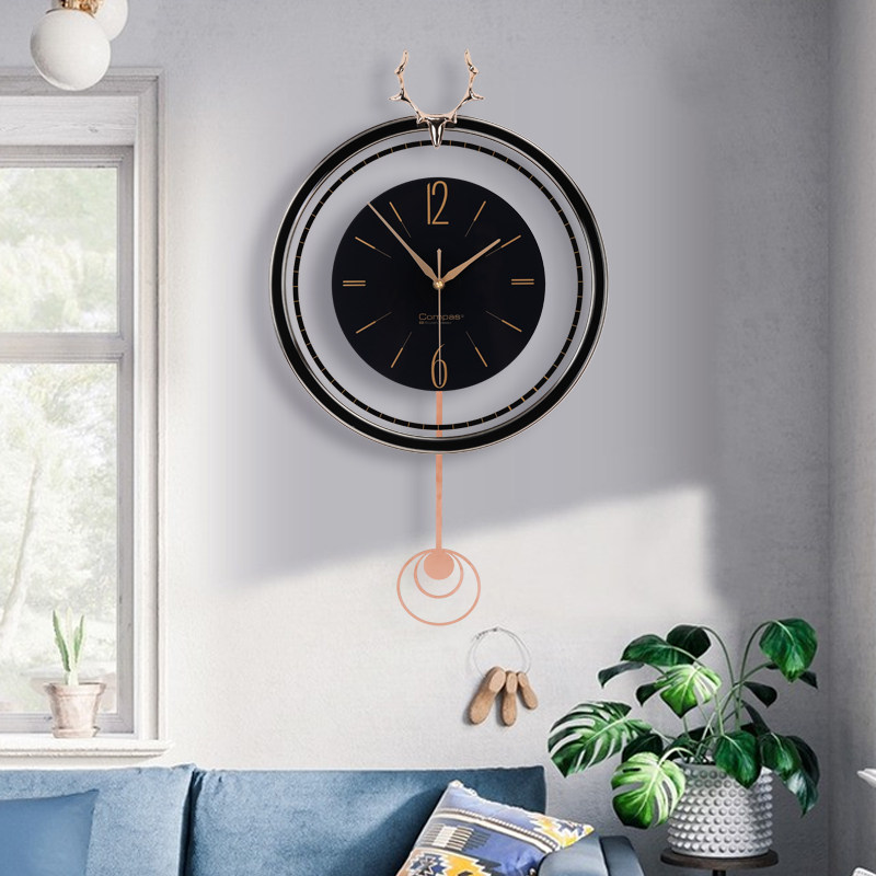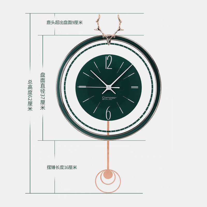 康巴丝欧式摇摆挂钟客厅简约时尚挂表创意轻奢静音石英钟现代钟表