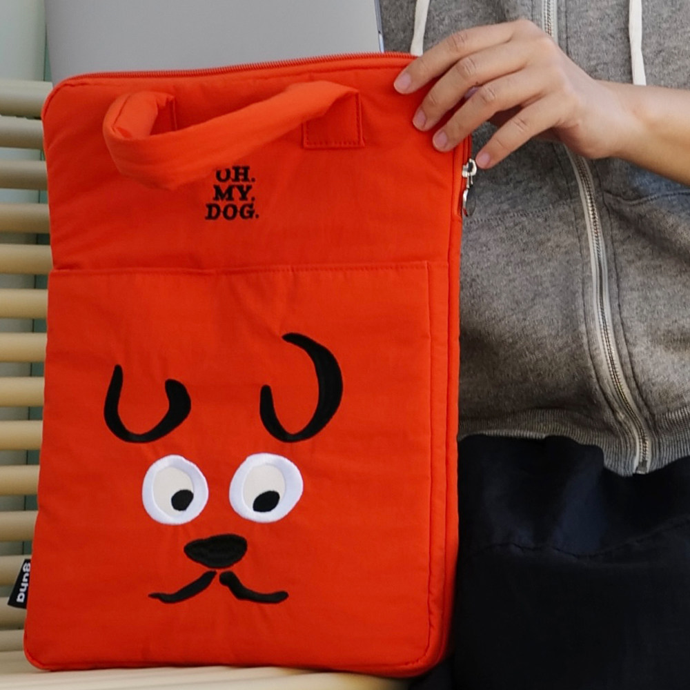 guha原创小狗彩色刺绣可爱手拎大容量可分区14英寸电脑包书包ipad包