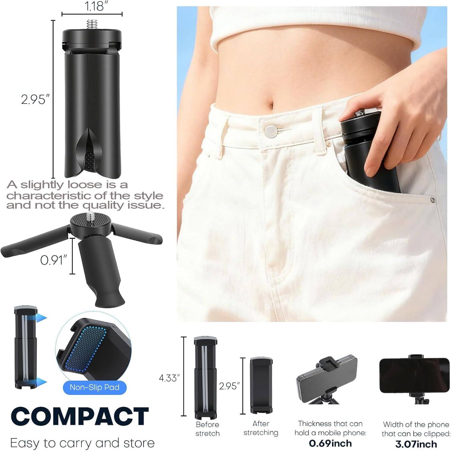[合金四脚架]手机直播支架自拍杆落地三脚架2026新款拍摄拍照视频专用相机通用旅游便携360度旋转多功能神器