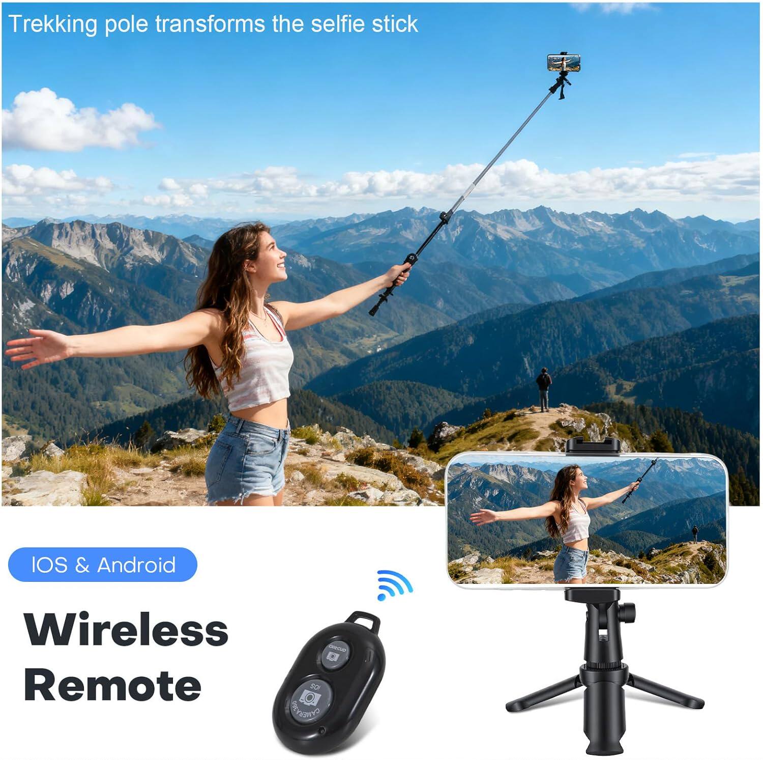 便携三脚架手机支架登山杖自拍杆二合一蓝牙遥控拍照神器桌面户外
