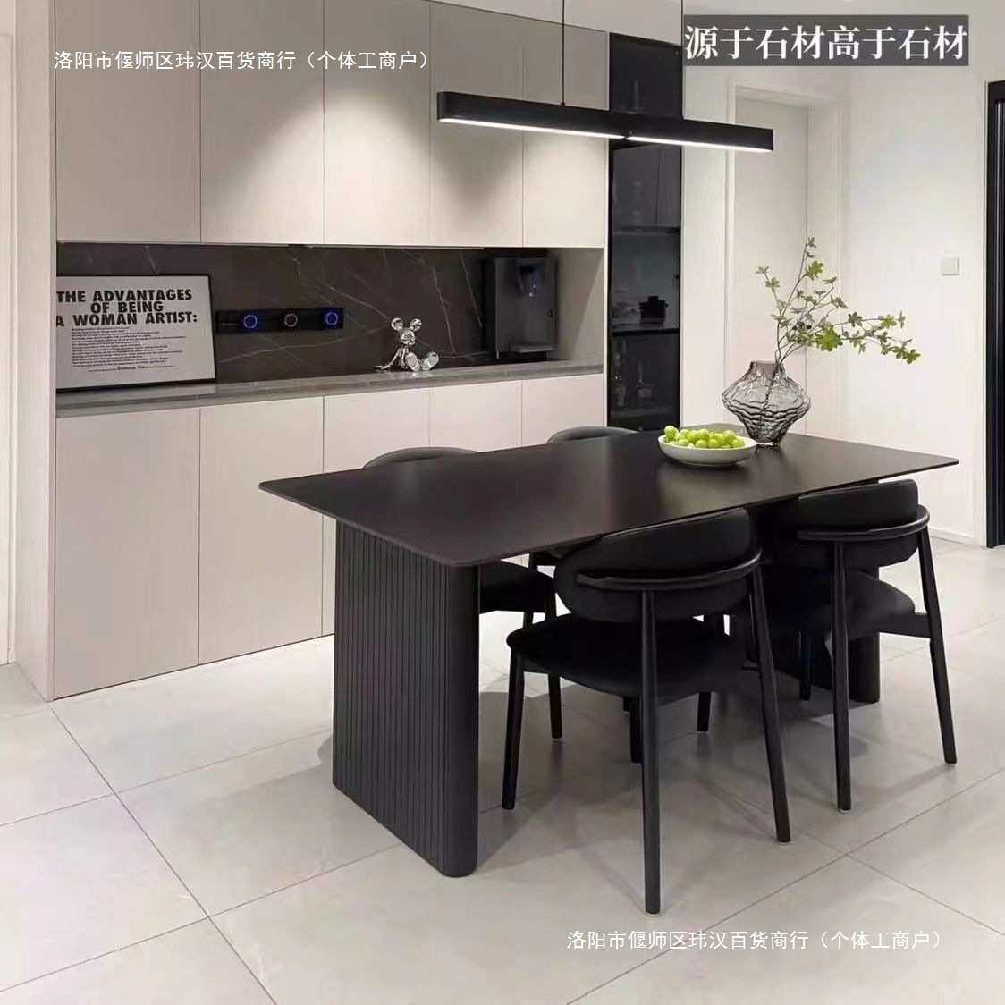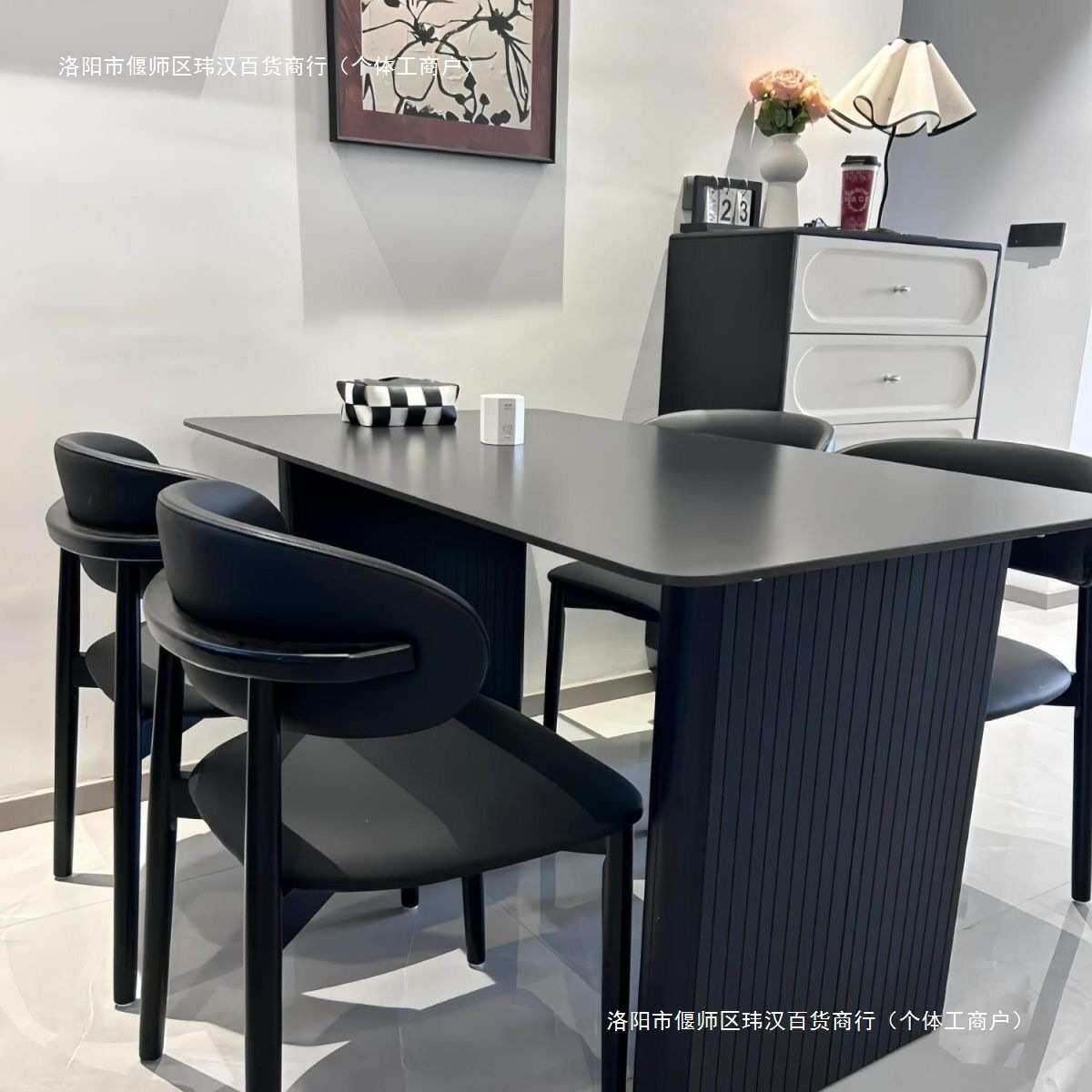 Jmo现代简约黑色岩板餐桌椅组合家用小户型轻奢长方形意式饭桌子