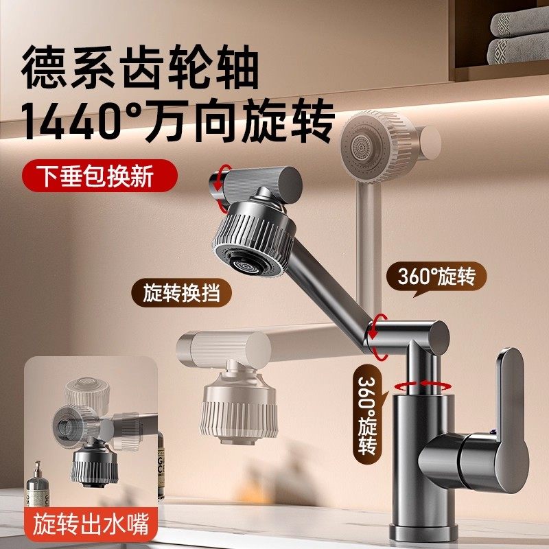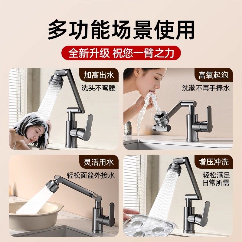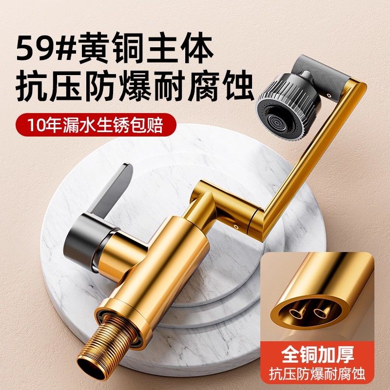 洗脸盆水龙头冷热万向旋转卫生间洗漱池上盆厨房全铜两用面盆加高