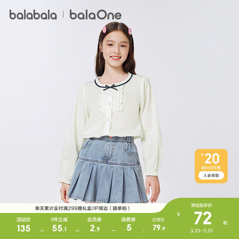 巴拉巴拉童装女童衬衫儿童长袖2026休闲春装学院风凉感抗菌白衬衫