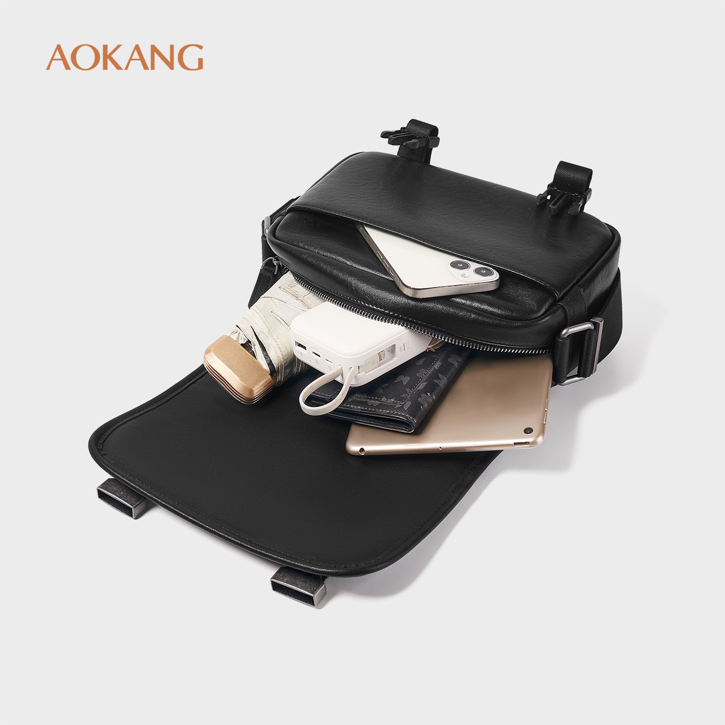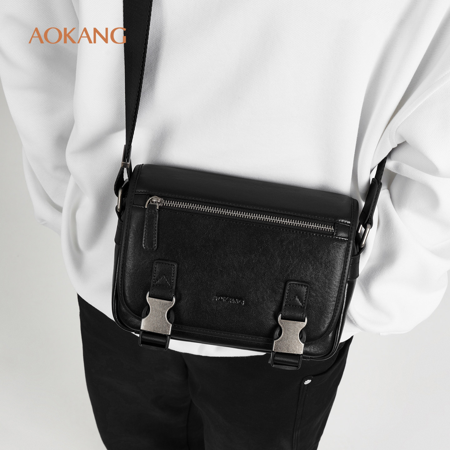 奥康 男包2026新款男士斜挎包高级感大容量单肩包休闲真皮邮差包G