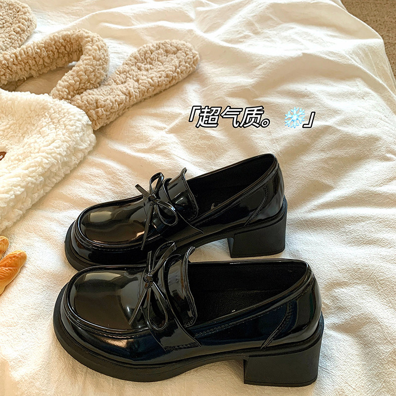 百搭黑色英伦风圆头粗高跟小皮鞋女2026新款春季配裙子增高乐福鞋