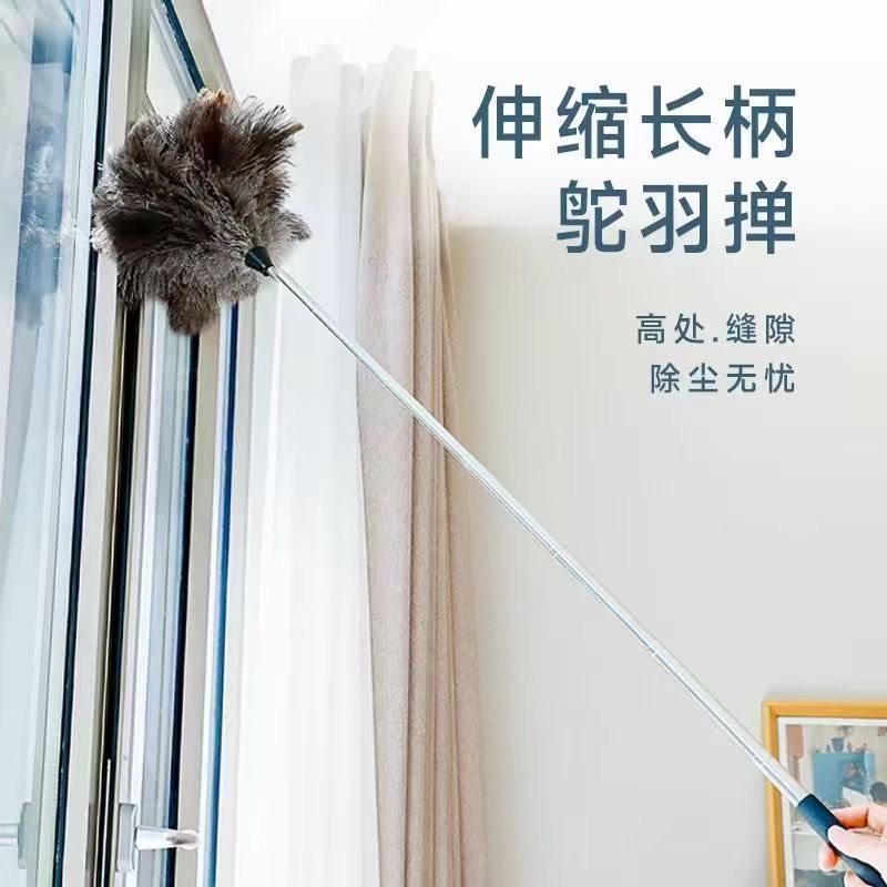 伸缩鸵鸟毛掸除尘扫灰家用鸡毛掸子静电除尘掸灰尘吸附清洁神器刷