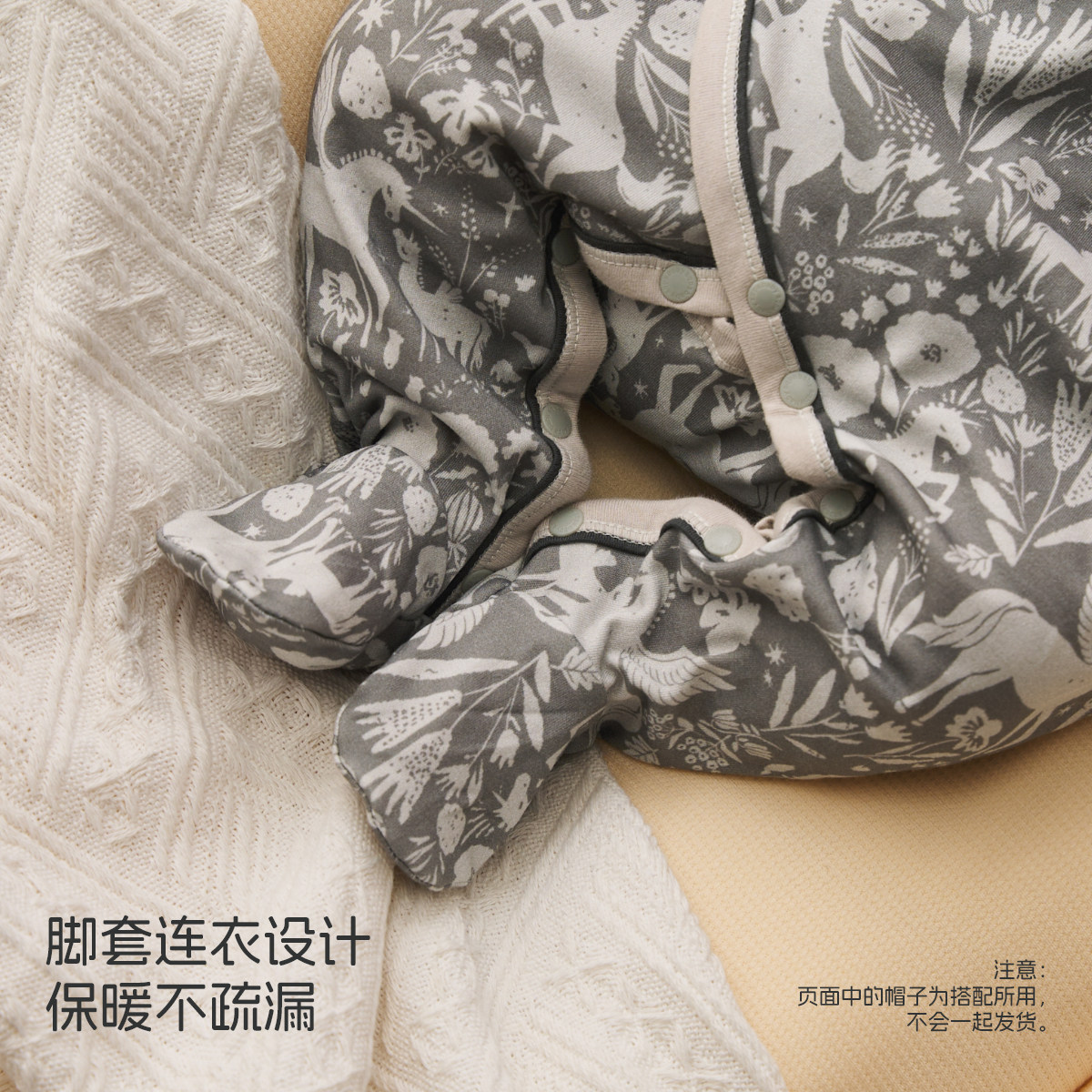 babycare冬季保暖山茶花连体衣宝宝包屁衣新生儿爬服外出婴儿衣服