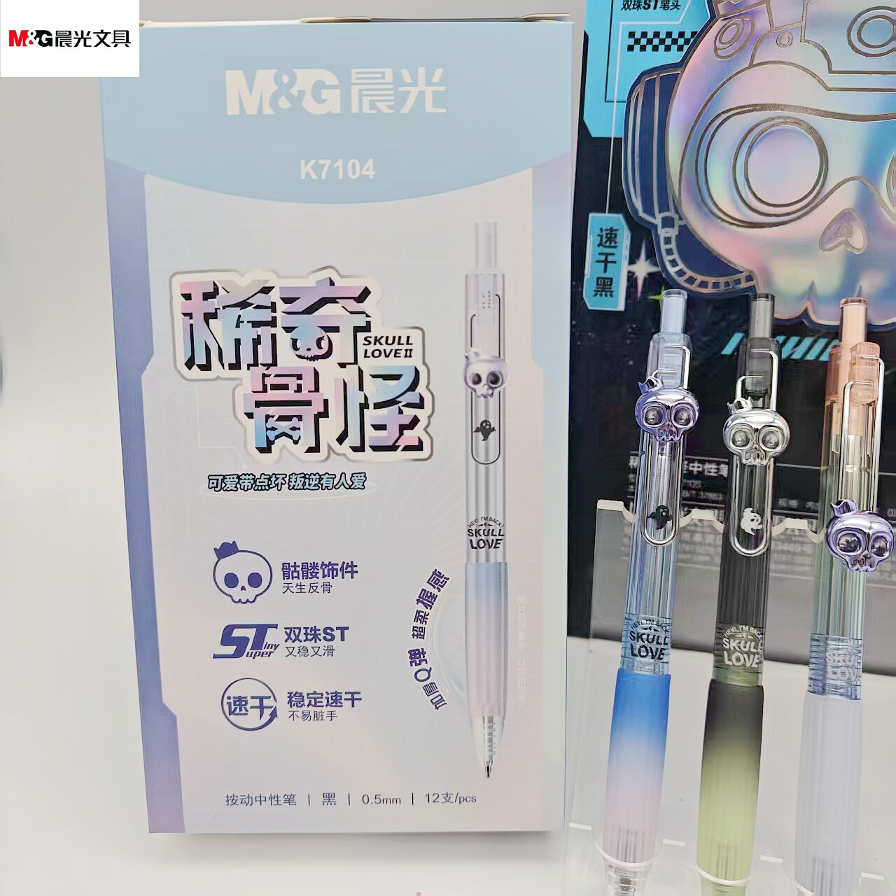 晨光稀奇古怪按动中性笔0.5双珠ST硅胶护套学生考试签字AGPK7104