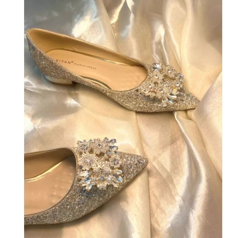香槟色粗跟结婚鞋2025新款新娘禾秀婚纱两穿孕妇平底高跟鞋不累脚