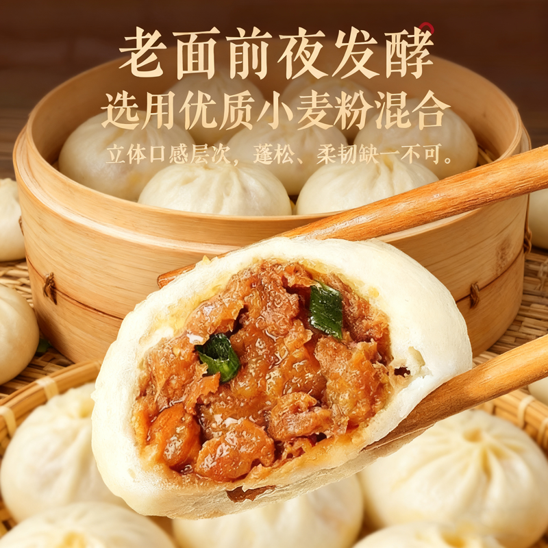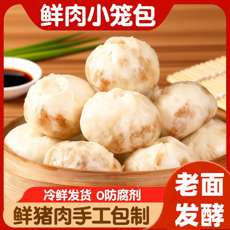 鲜肉小笼包正宗猪肉老面发酵手工包嵊州杭州早餐加热即食速食早点