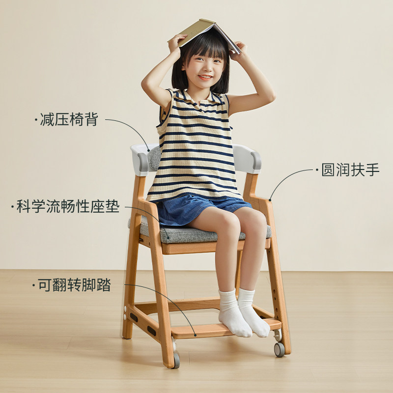 2平米实木儿童学习椅学生家用升降座椅凳子餐椅H椅