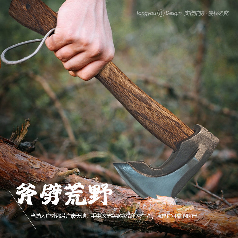 户外便携斧头野外露营斧头劈柴专用高锰钢锻打木柄斧生存装备斧