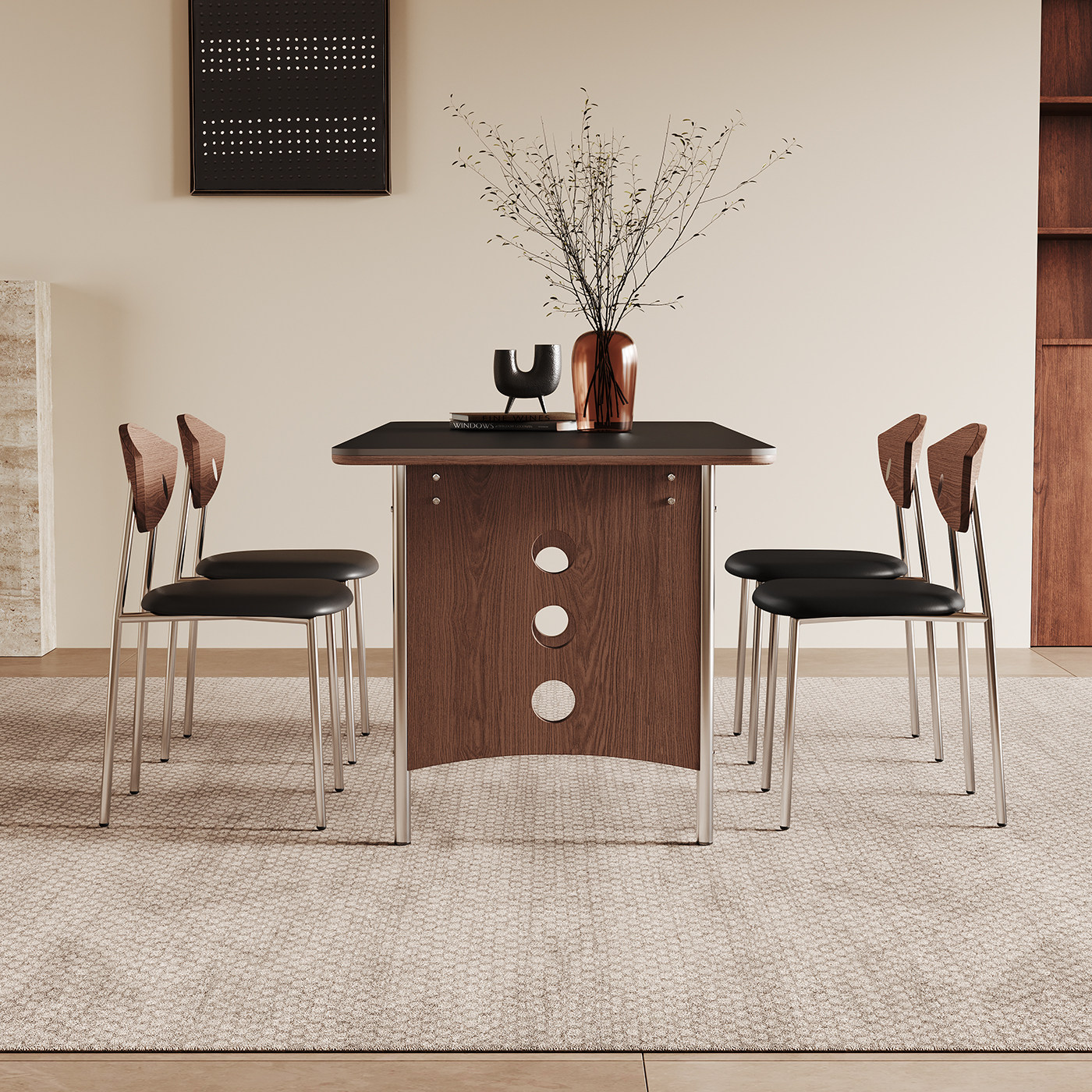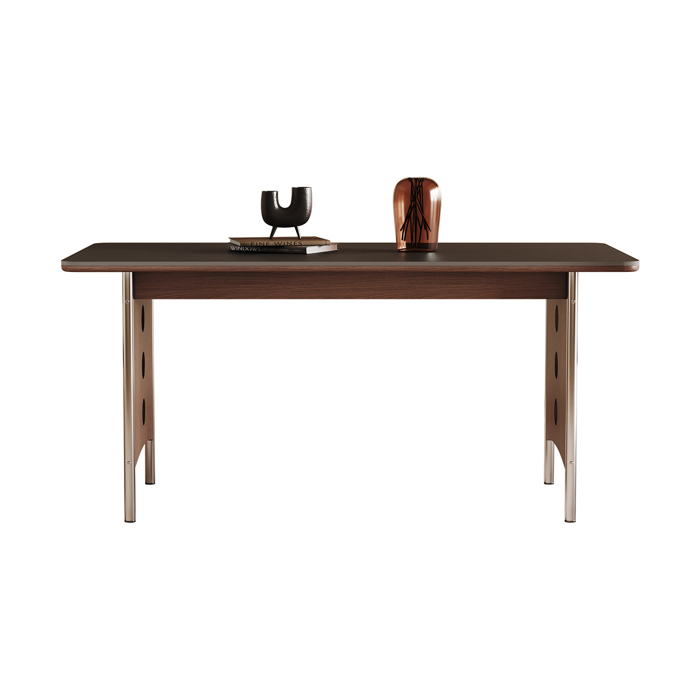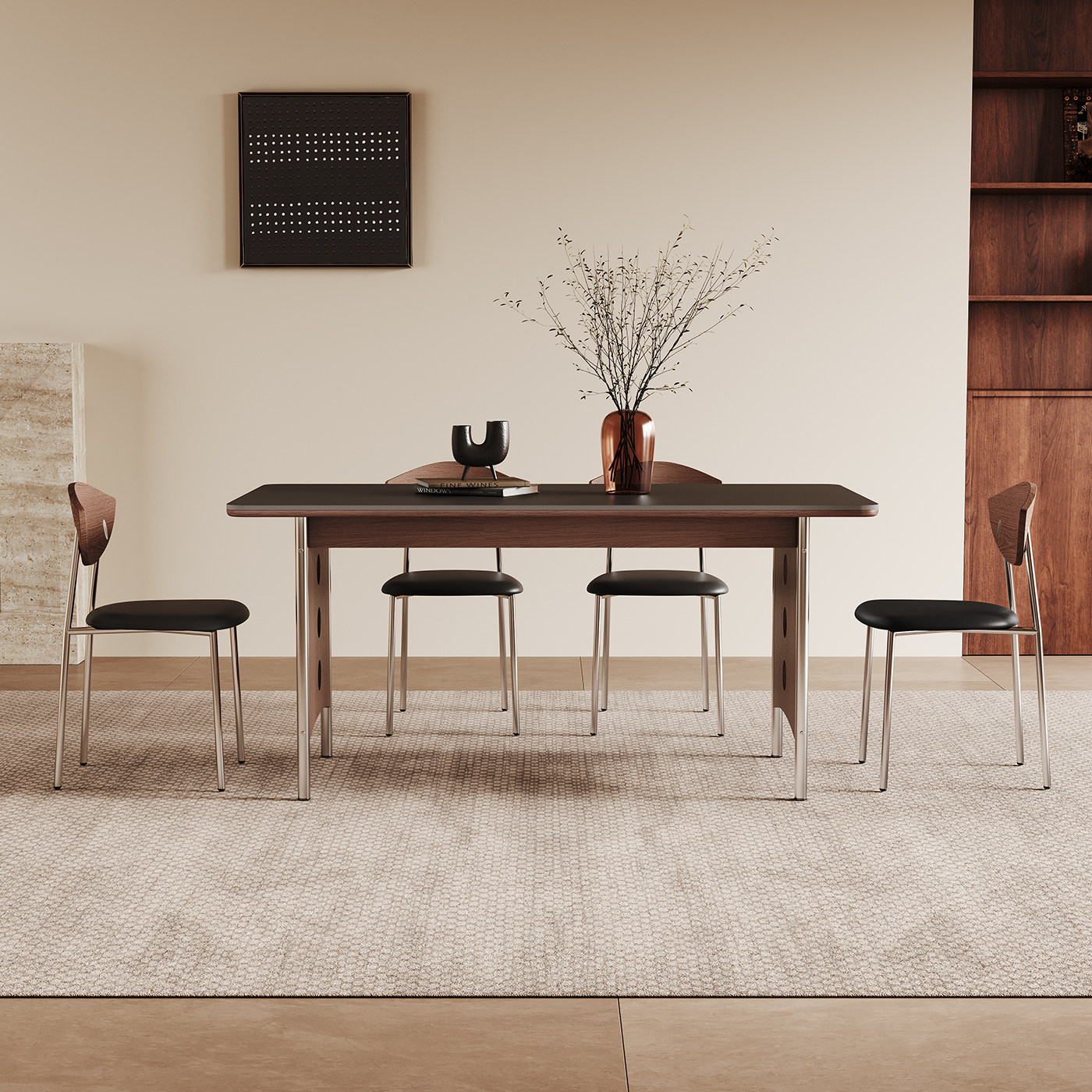 中古风岩板餐桌包豪斯不锈钢家用2025新款法式复古长方形实木餐桌