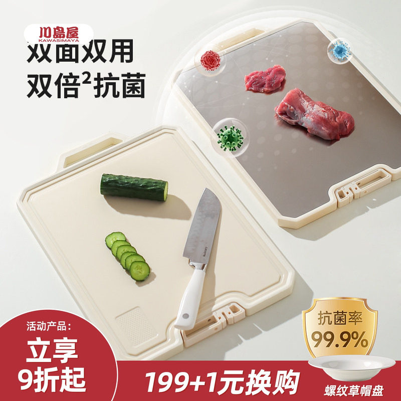 川岛屋菜板防霉抗菌家用食品级砧板双面切水果不锈钢案板厨房专用