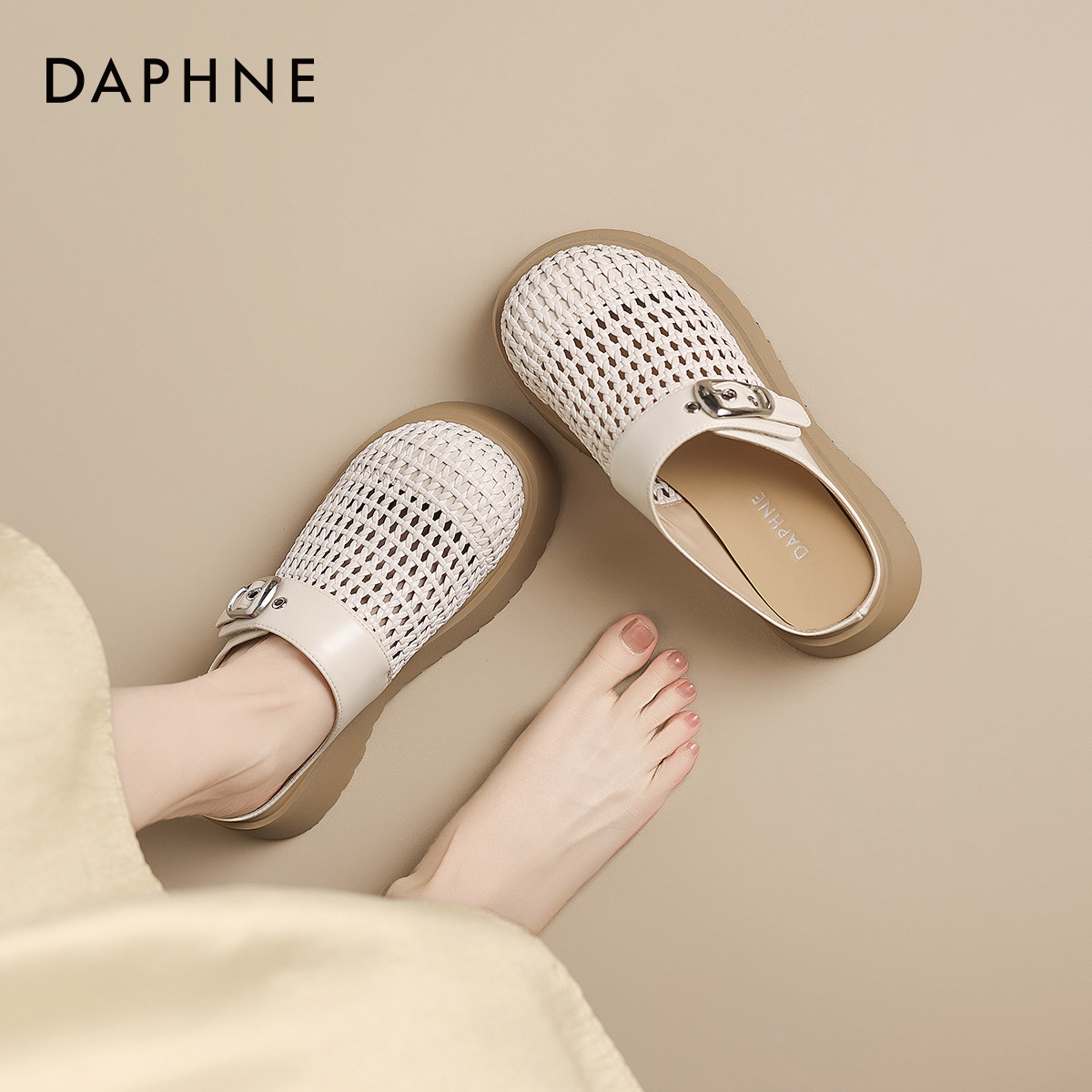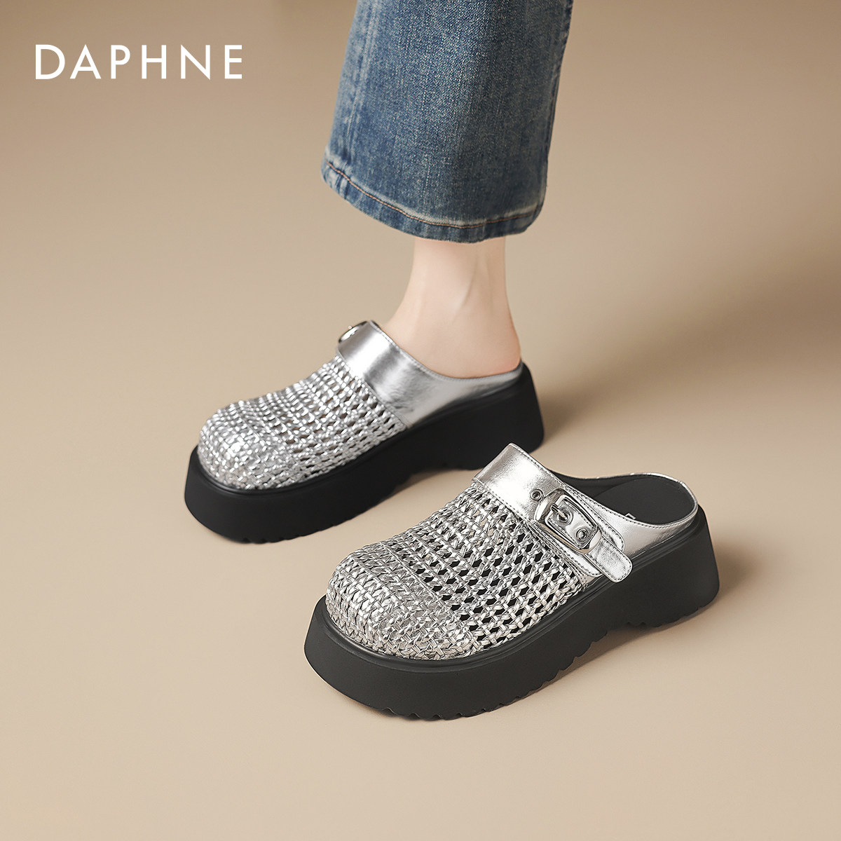 达芙妮厚底网面透气罗马凉鞋2026新款春夏季外穿凉拖鞋编织女鞋子