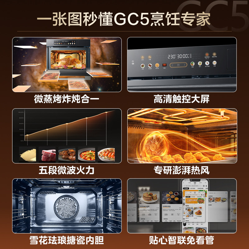 美的GS5/GC5微蒸烤炸炖一体机嵌入式微波蒸烤箱烤箱五合一优惠品