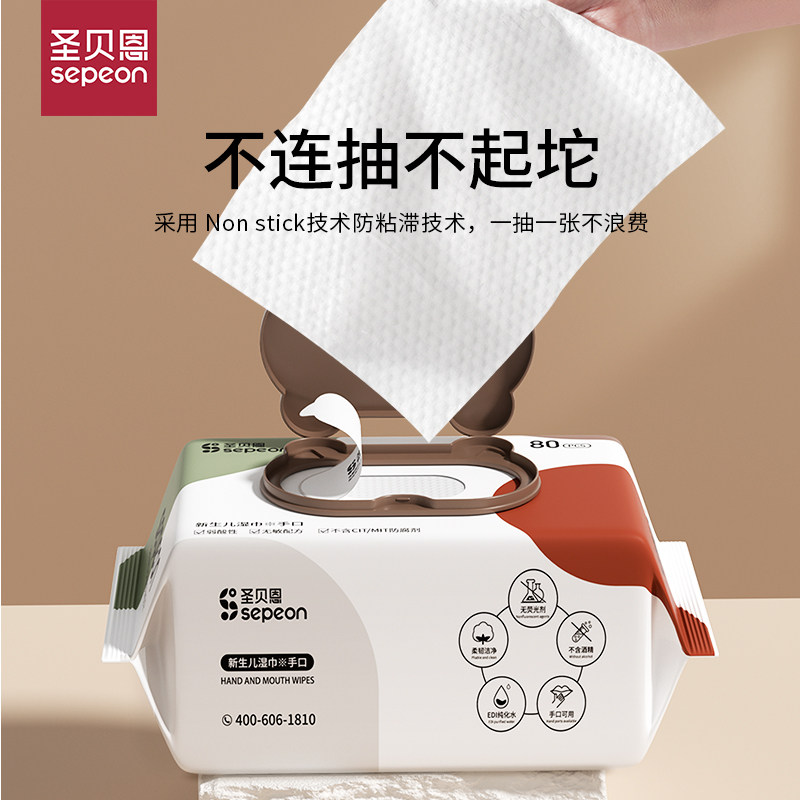 圣贝恩婴儿手口专用湿纸巾加厚80抽5大包珍珠纹家用实惠装湿巾
