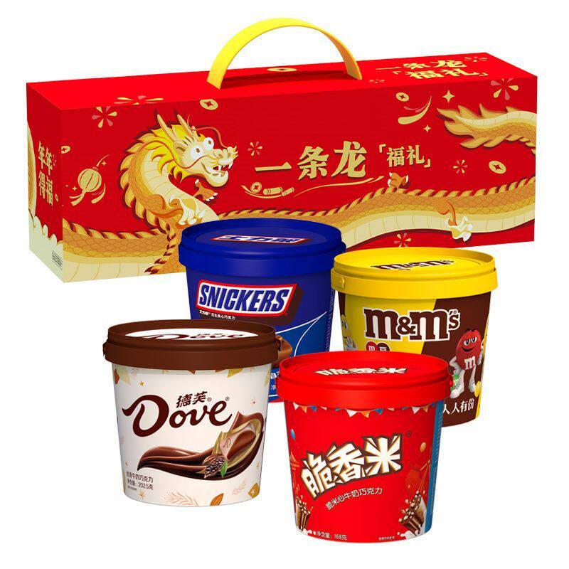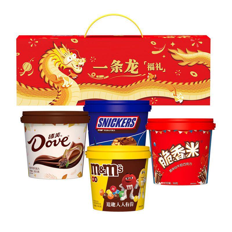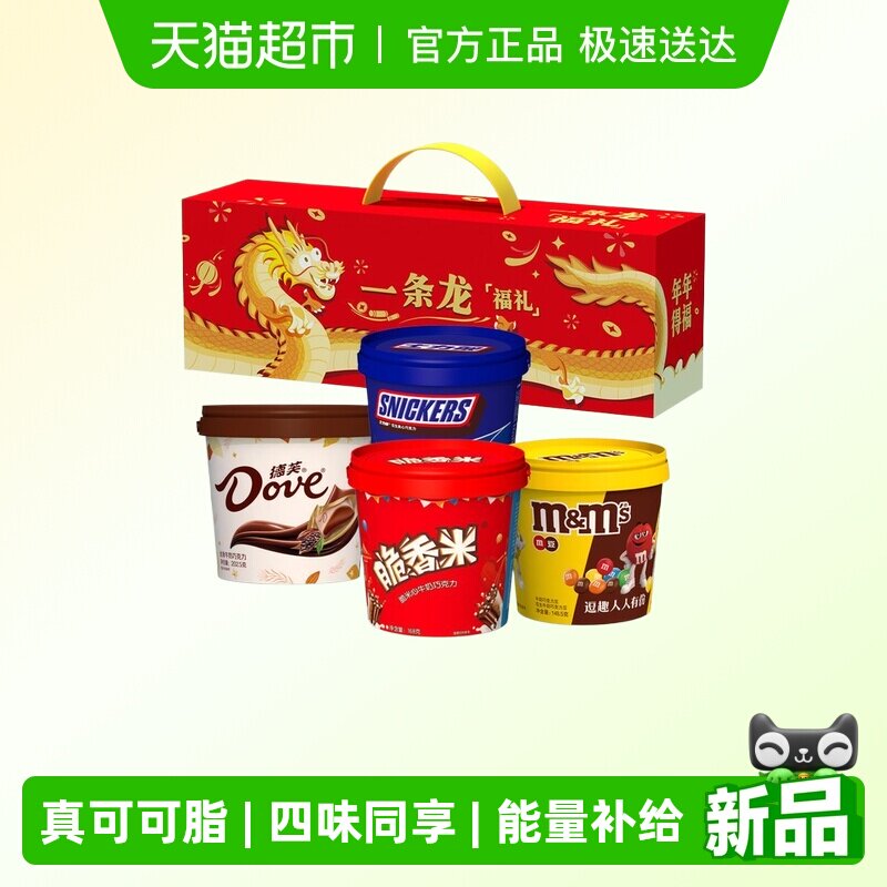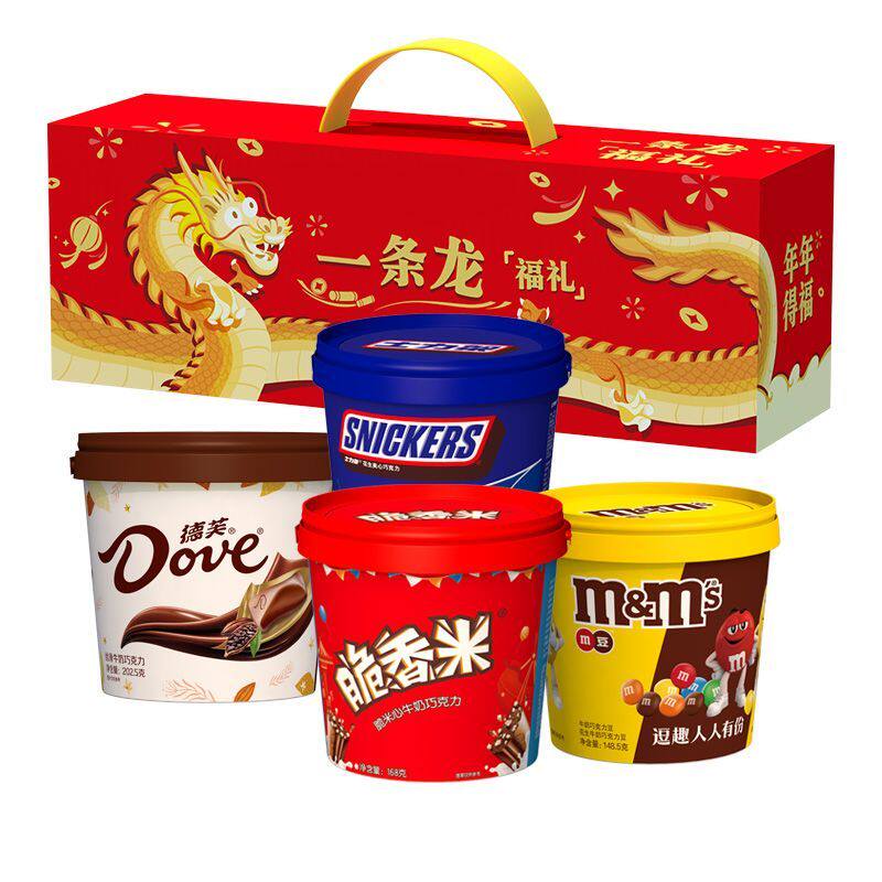 【详情领券】德芙一条龙巧克力礼盒四桶装节日送家人朋友零食