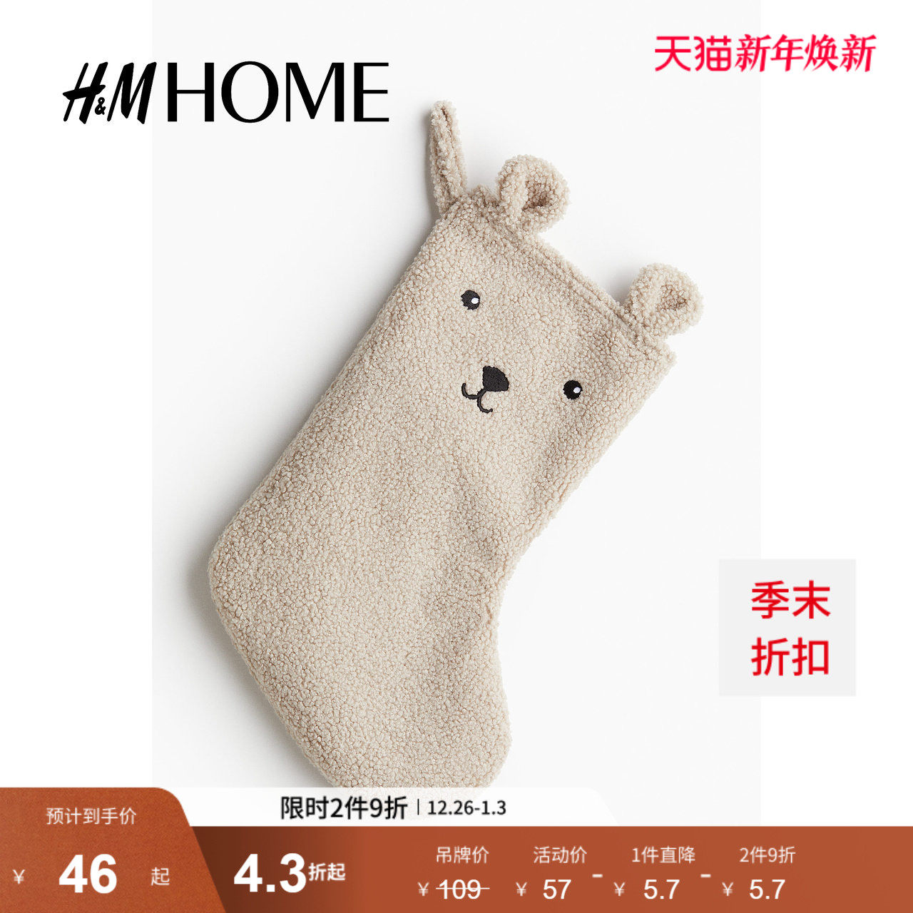 HM HOME居家布艺装饰配件冬季室内氛围感泰迪绒袜子1243441